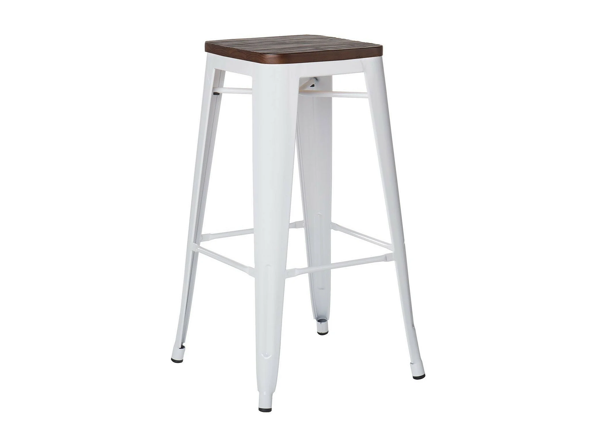 Tabouret haut industriel acier brillant et assise en bois massif marron Reko 76cm-Couleur Blanc