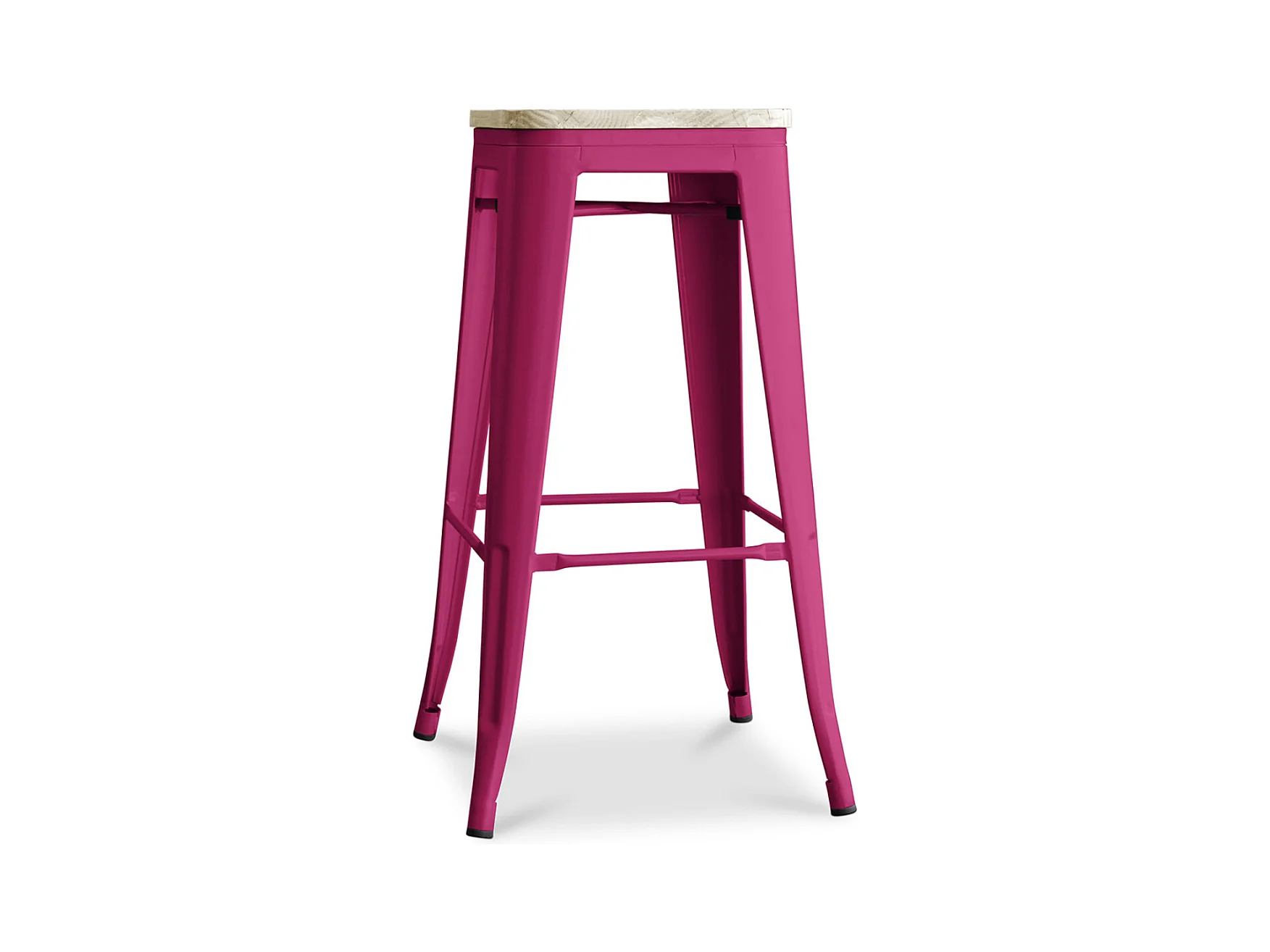 Tabouret haut industriel acier brillant et assise en bois massif marron Reko 76cm-Couleur Jaune