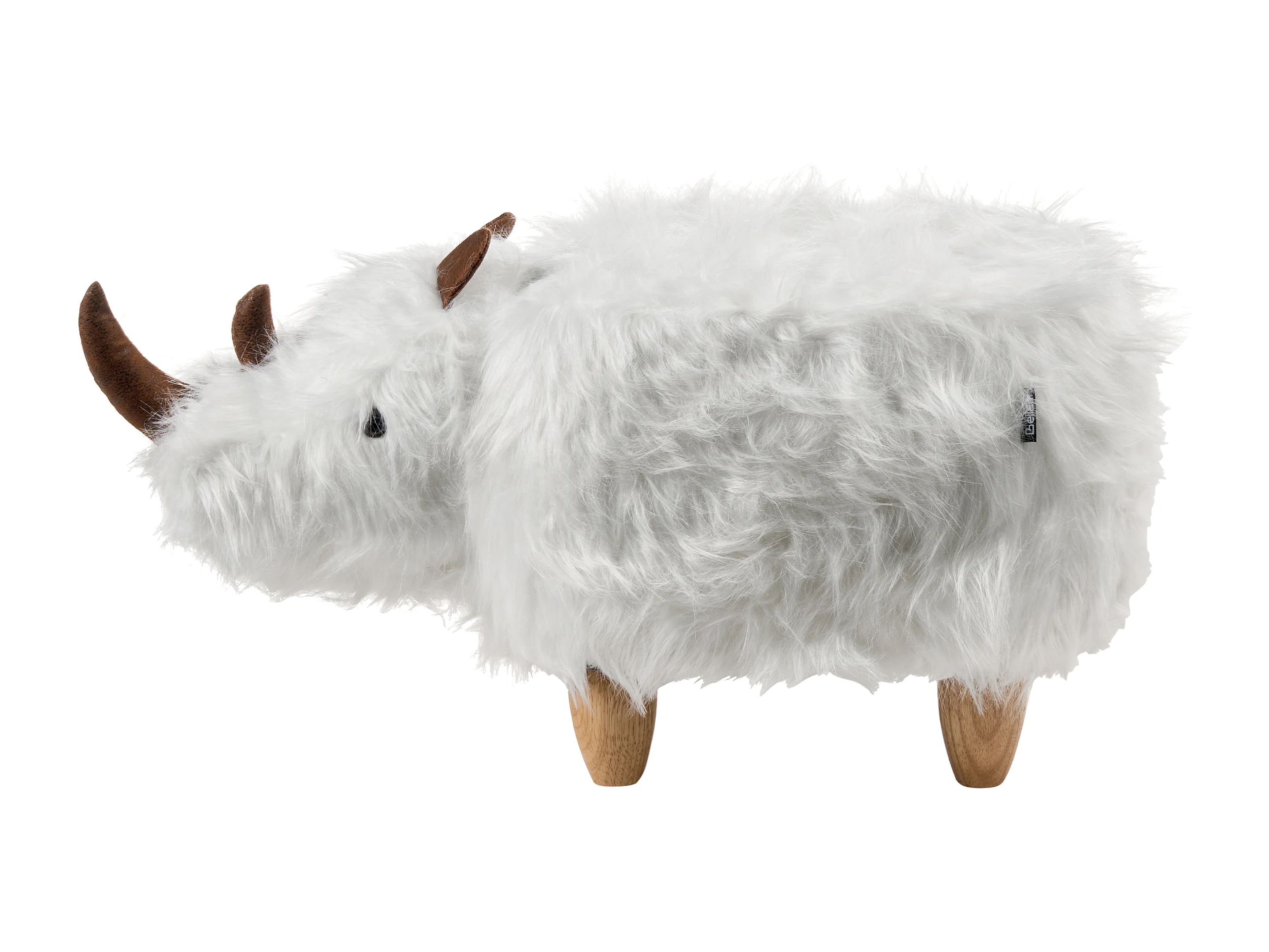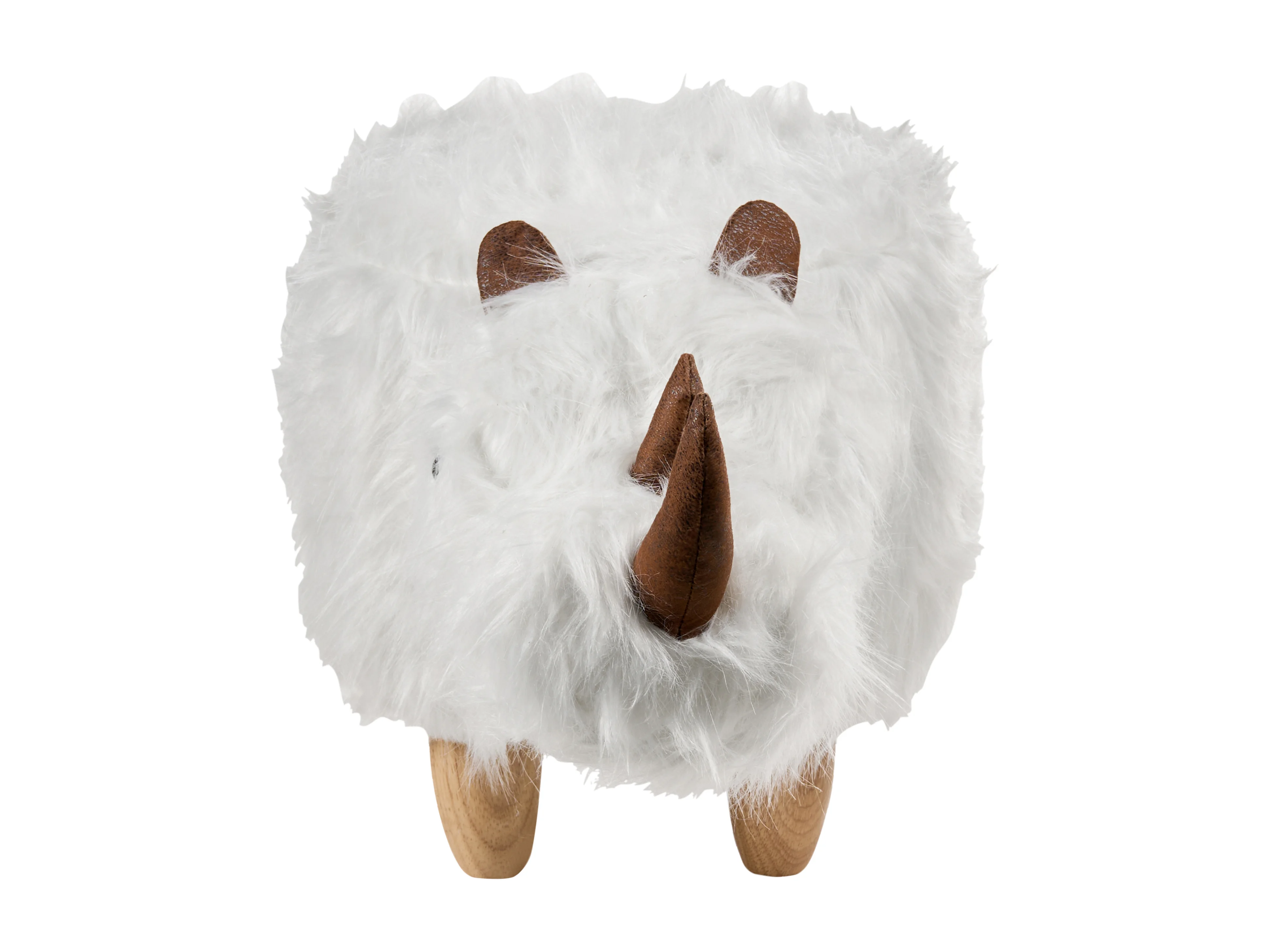 Tabouret animal WOOLLY Fourrure synthétique Blanc Rhinocéros