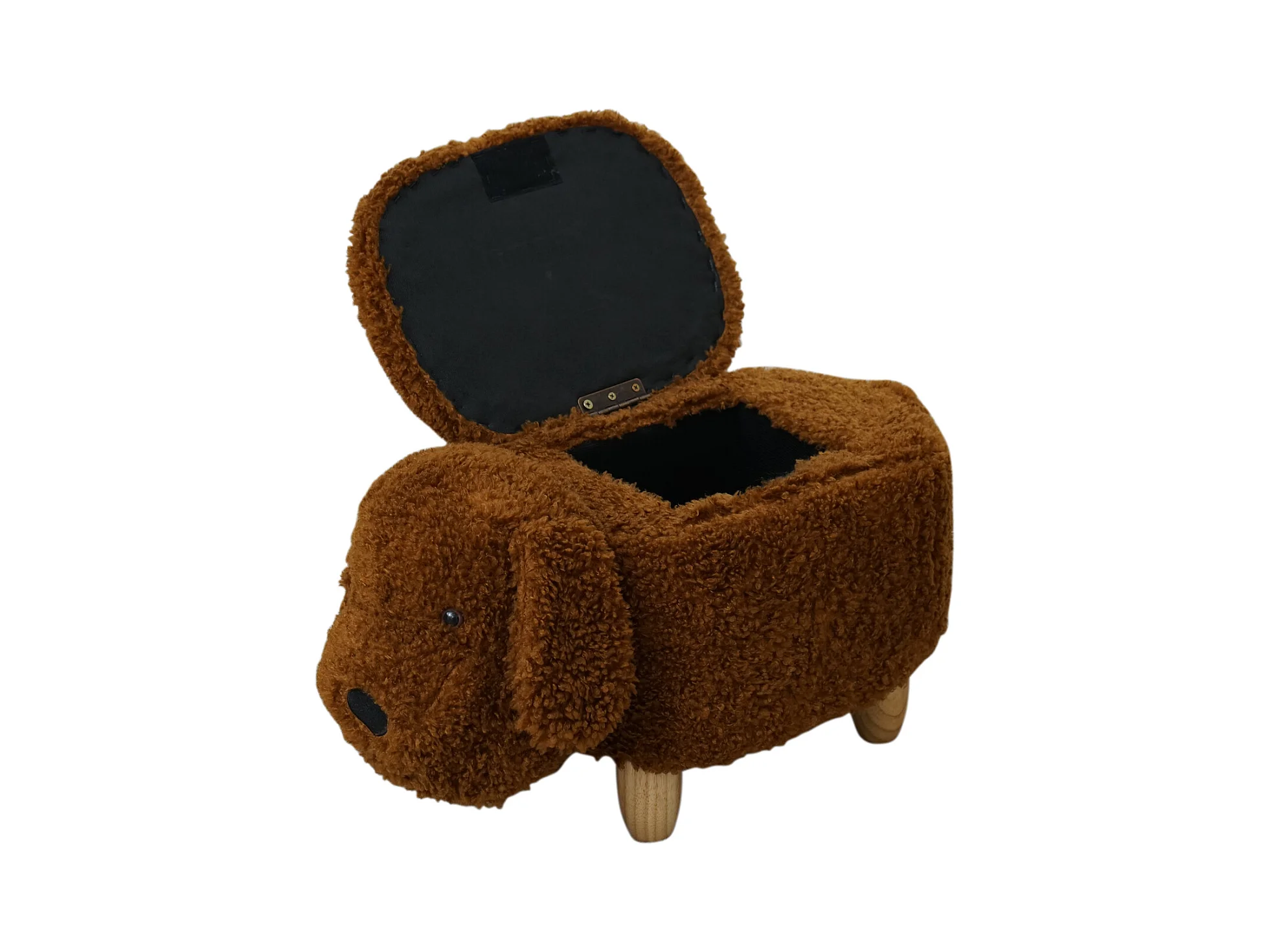 Tabouret pour enfant ANIMAL STORAGE avec espace de rangement Rembourré Chien Carlin marron