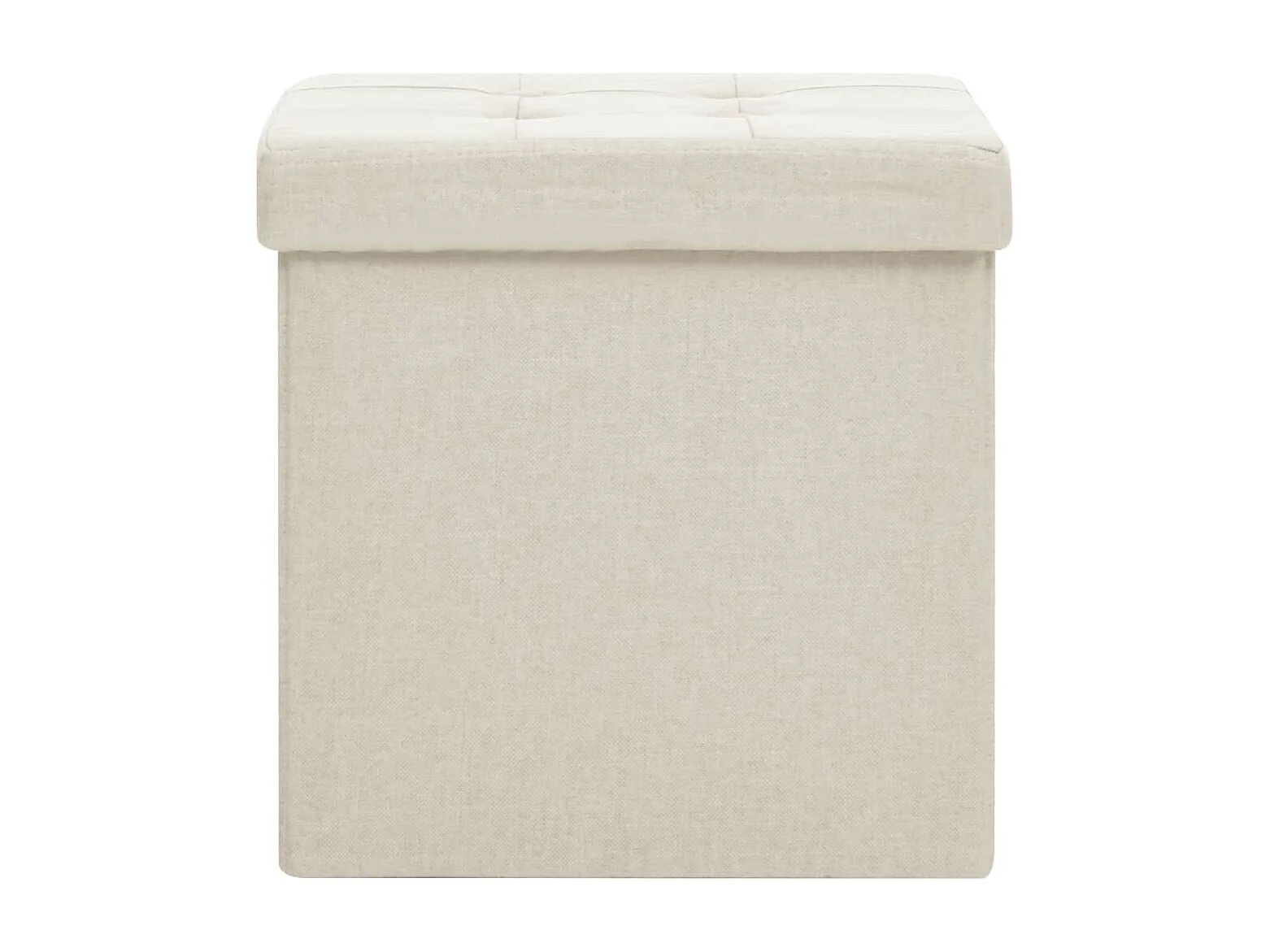 Tabouret en bouclettes blanches avec coffre de rangement intégré