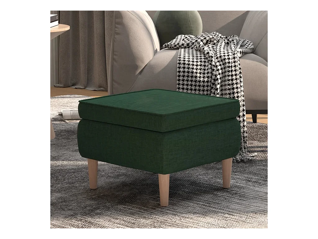 Tabouret avec pieds en bois Vert foncé Tissu 2
