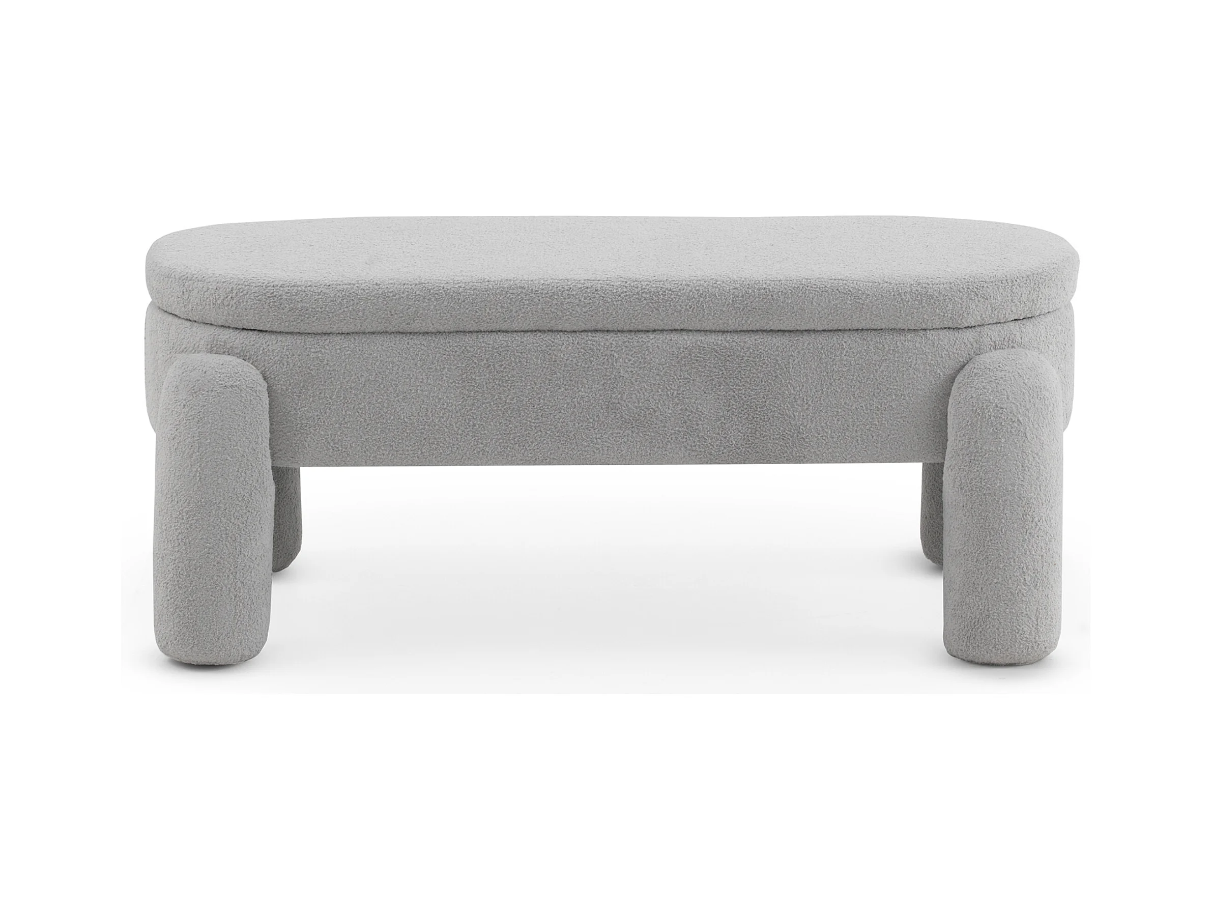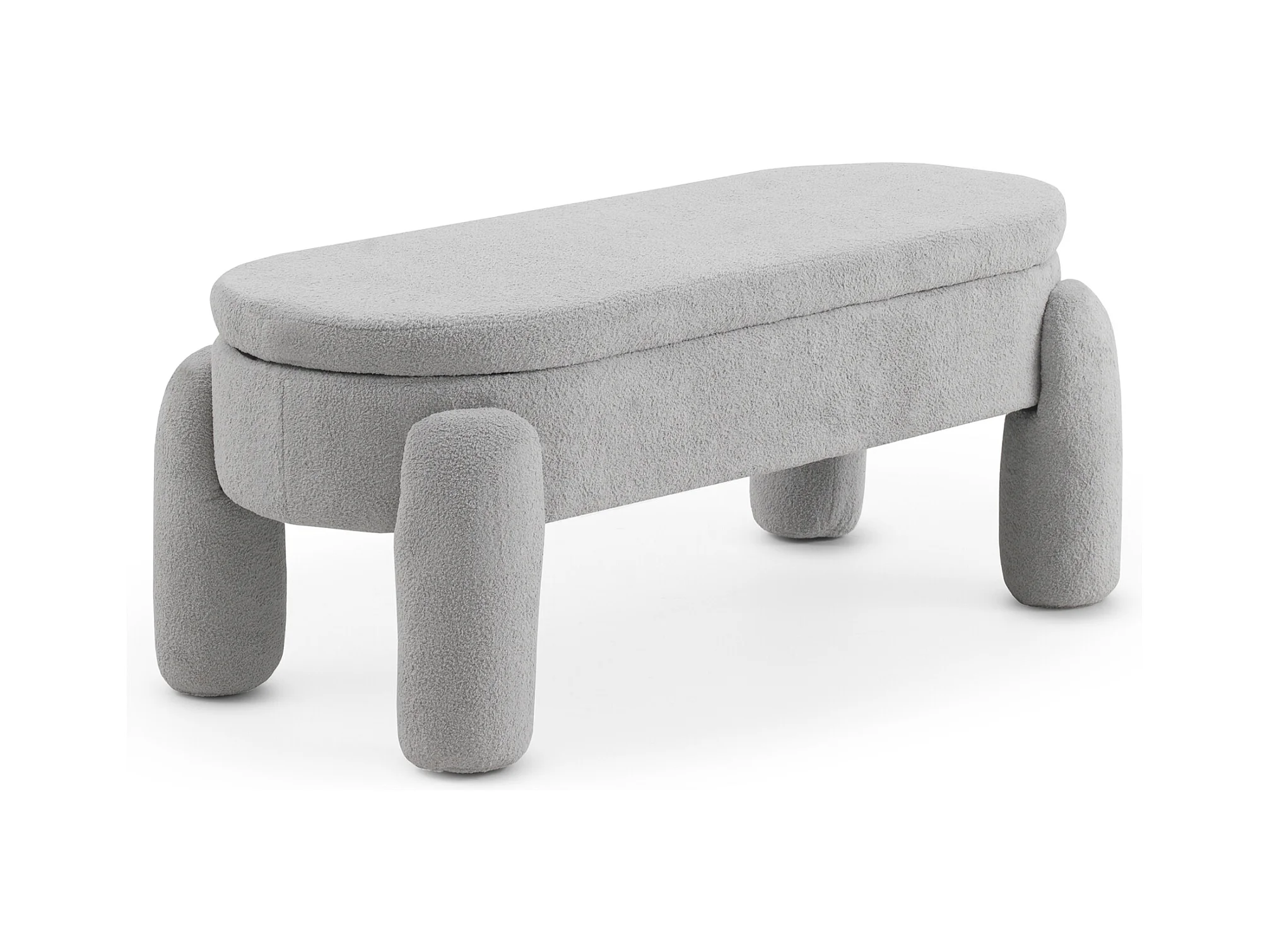 Tabouret-baul avec structure et pieds tapissés en boucle gris clair
