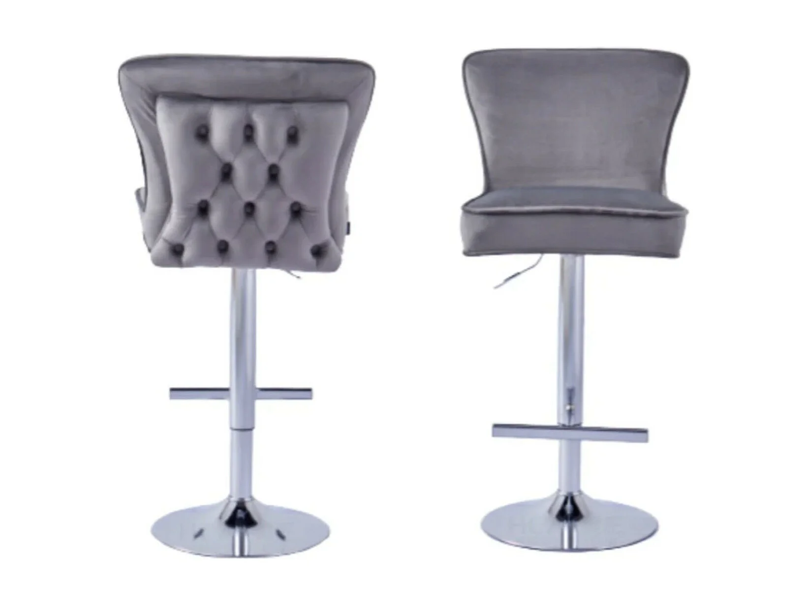 Tabouret capitonné velours et et pied chromé Gaby - Lot de 2-Couleur Noir