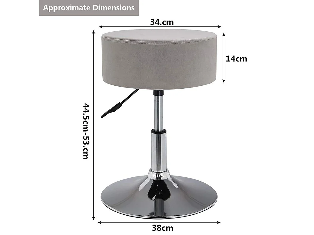 Tabouret chaise hauteur réglable tissu grise 38.5 x 38.5 x 53 cm TABO09052
