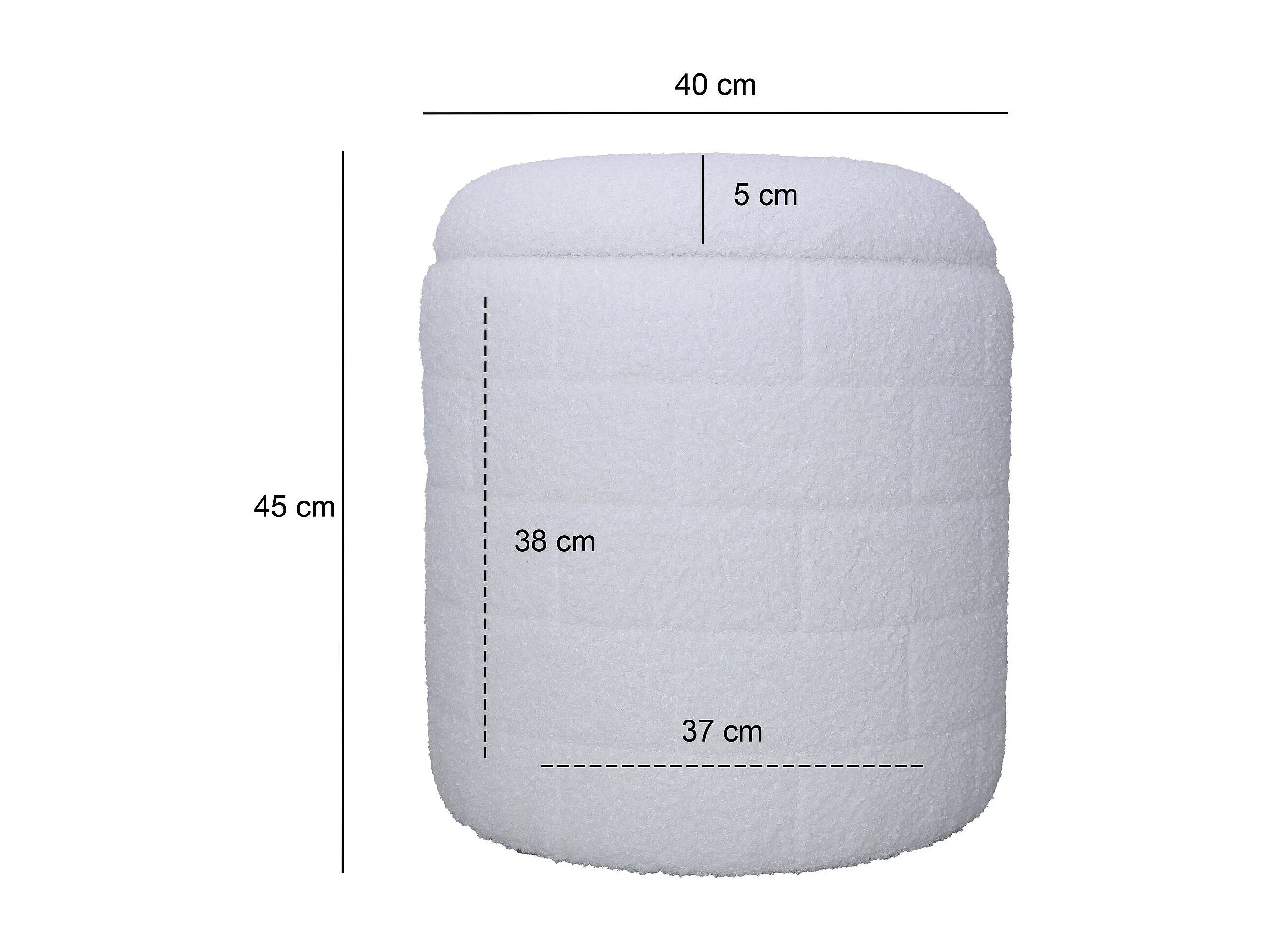Marcos - Tabouret rond en tissu bouclette ø40cm - Blanc