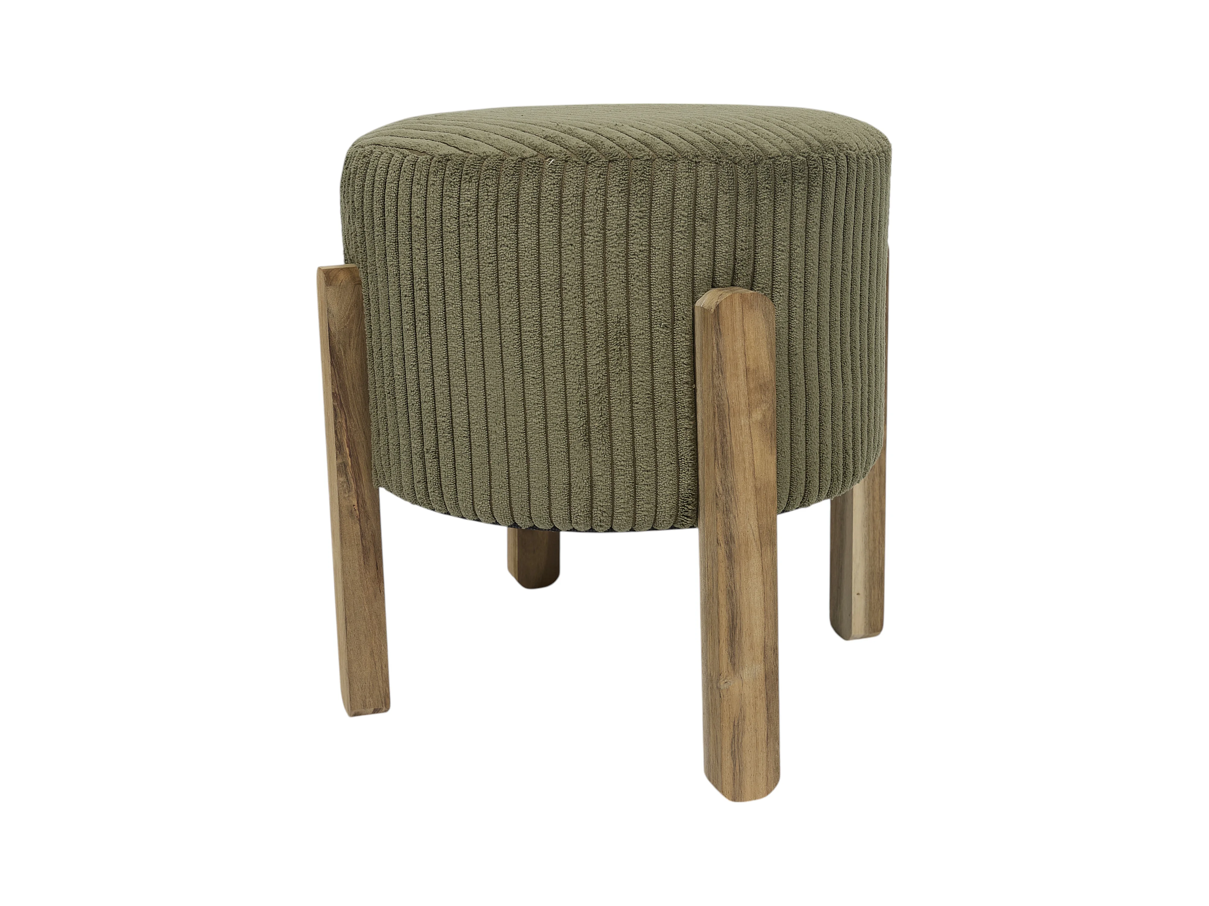 Tabouret rond rembourré tissu vert et pieds en bois - Diamètre 39 x Profondeur 38 x Hauteur 38 cm