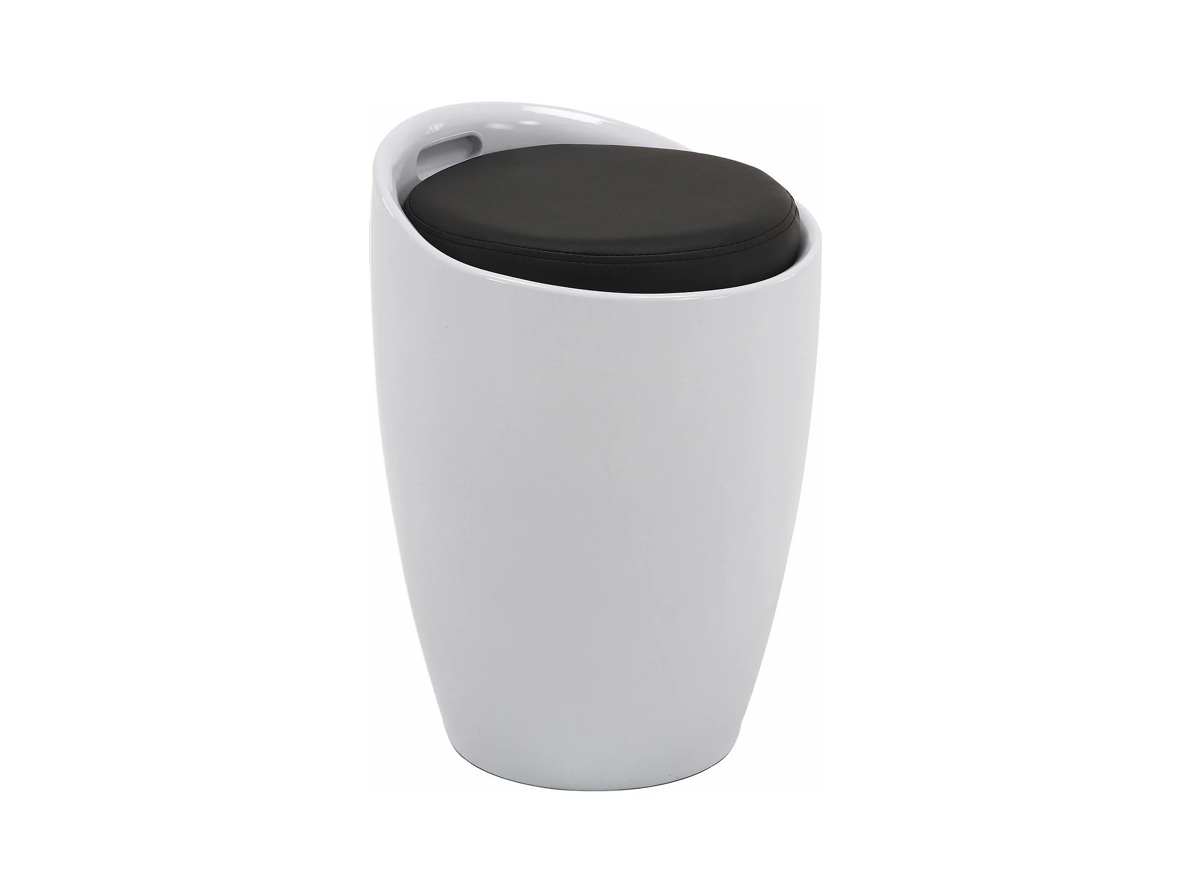 Tabouret DANIEL pouf rond coffre de rangement panier à linge siège avec assise rembourrée noir, structure en plastique blanc