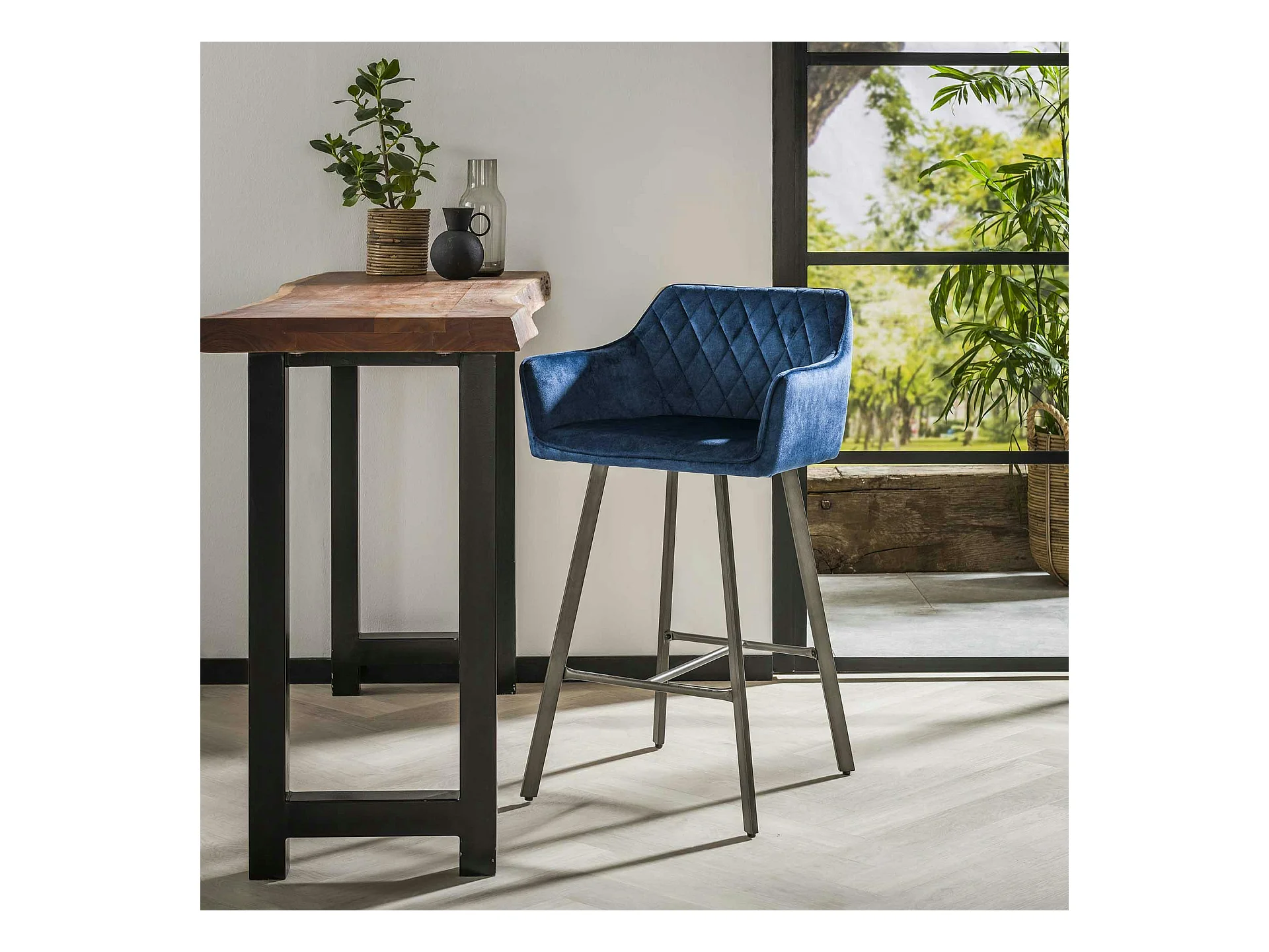 Tabouret de bar avec accoudoirs en velours bleu MELBOURNE