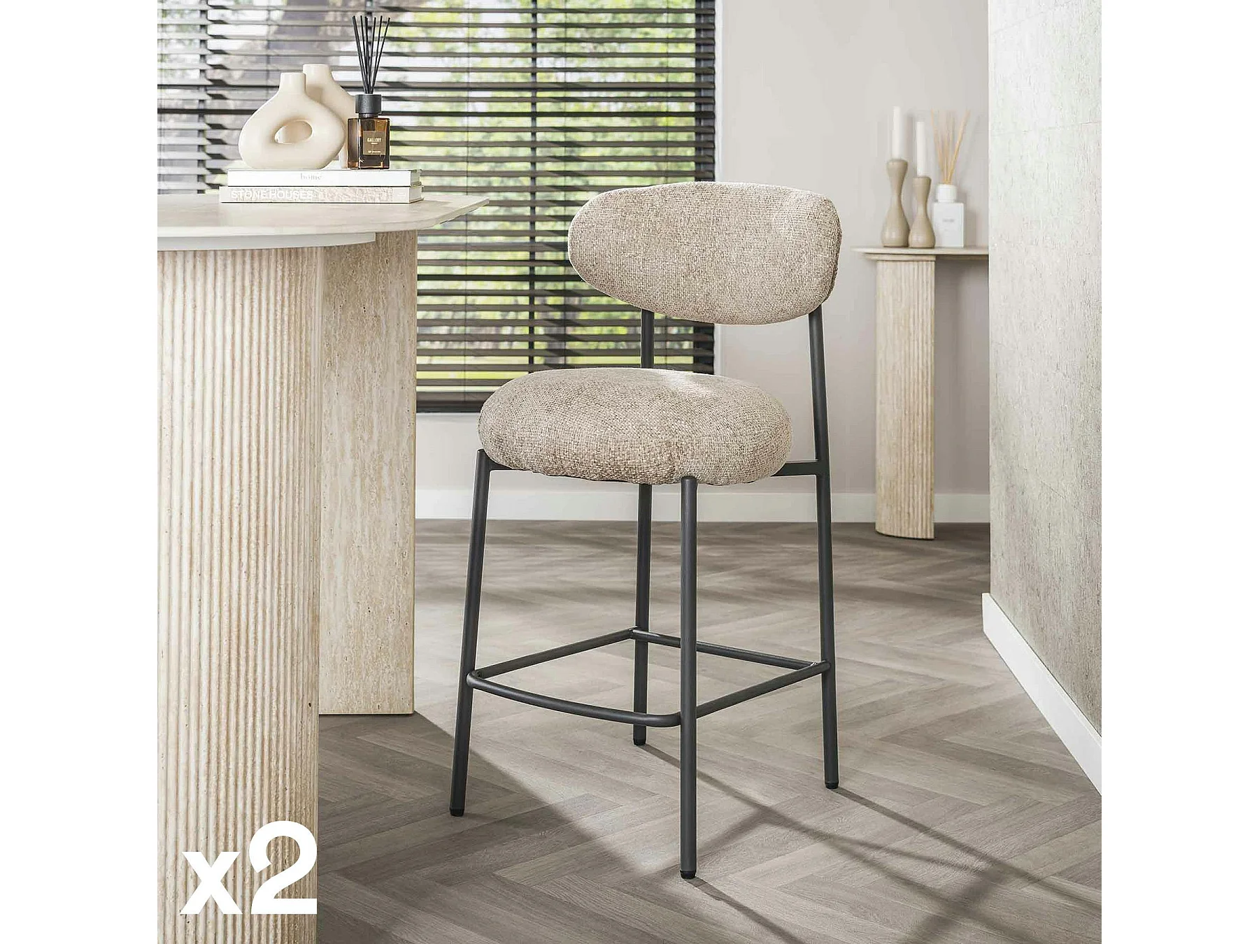 Tabouret de bar beige à dossier rond (lot de 2) CREEK