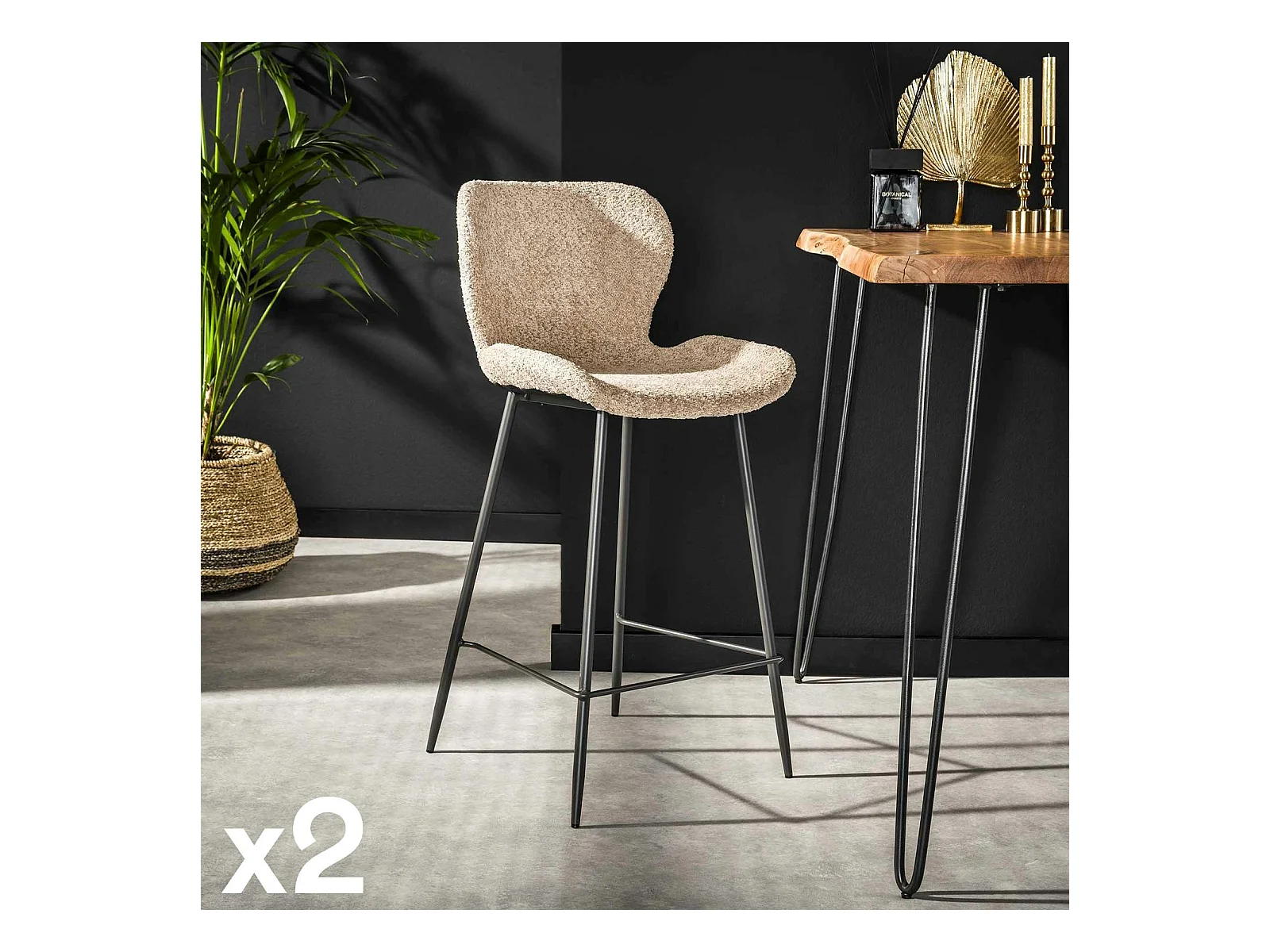 Tabouret de bar beige en bouclette (lot de 2) MELBOURNE