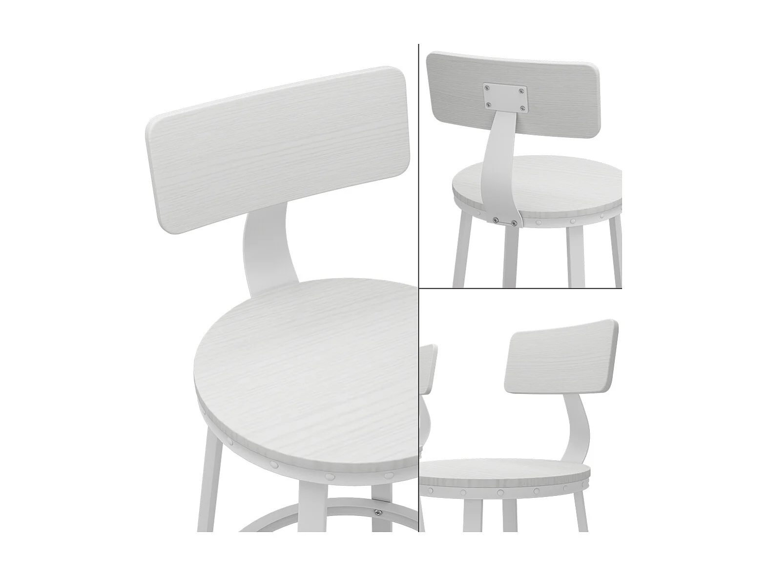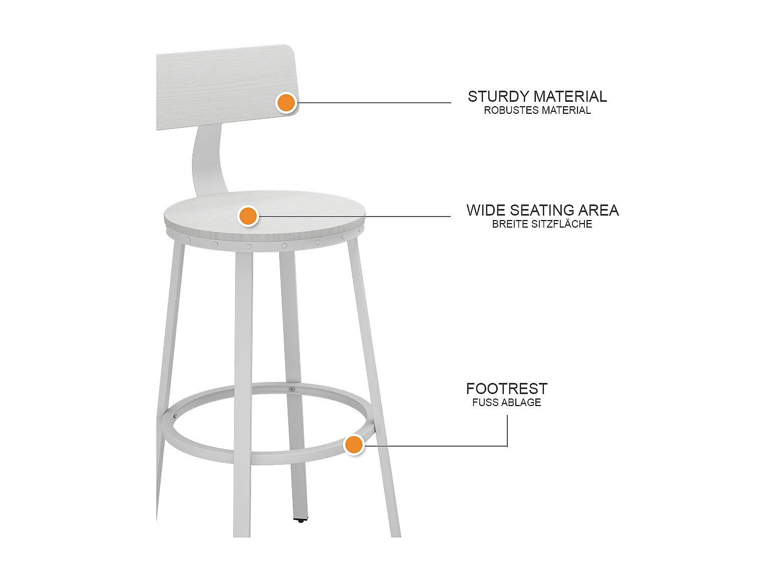 Lot de 2 tabourets de bar avec dossier et repose-pieds, en bois d'hévéa, pour cuisine, salle à manger, chêne + blanc