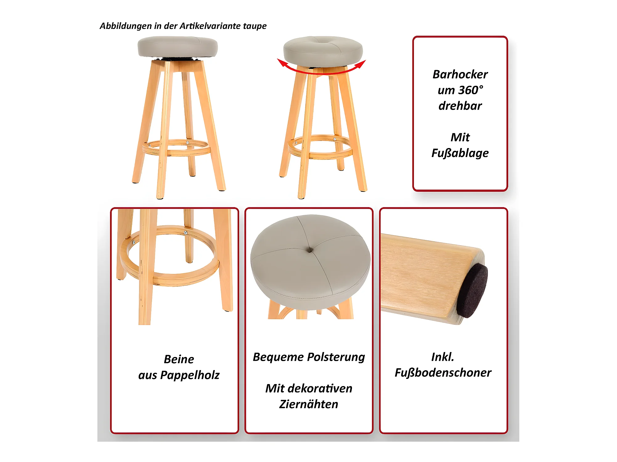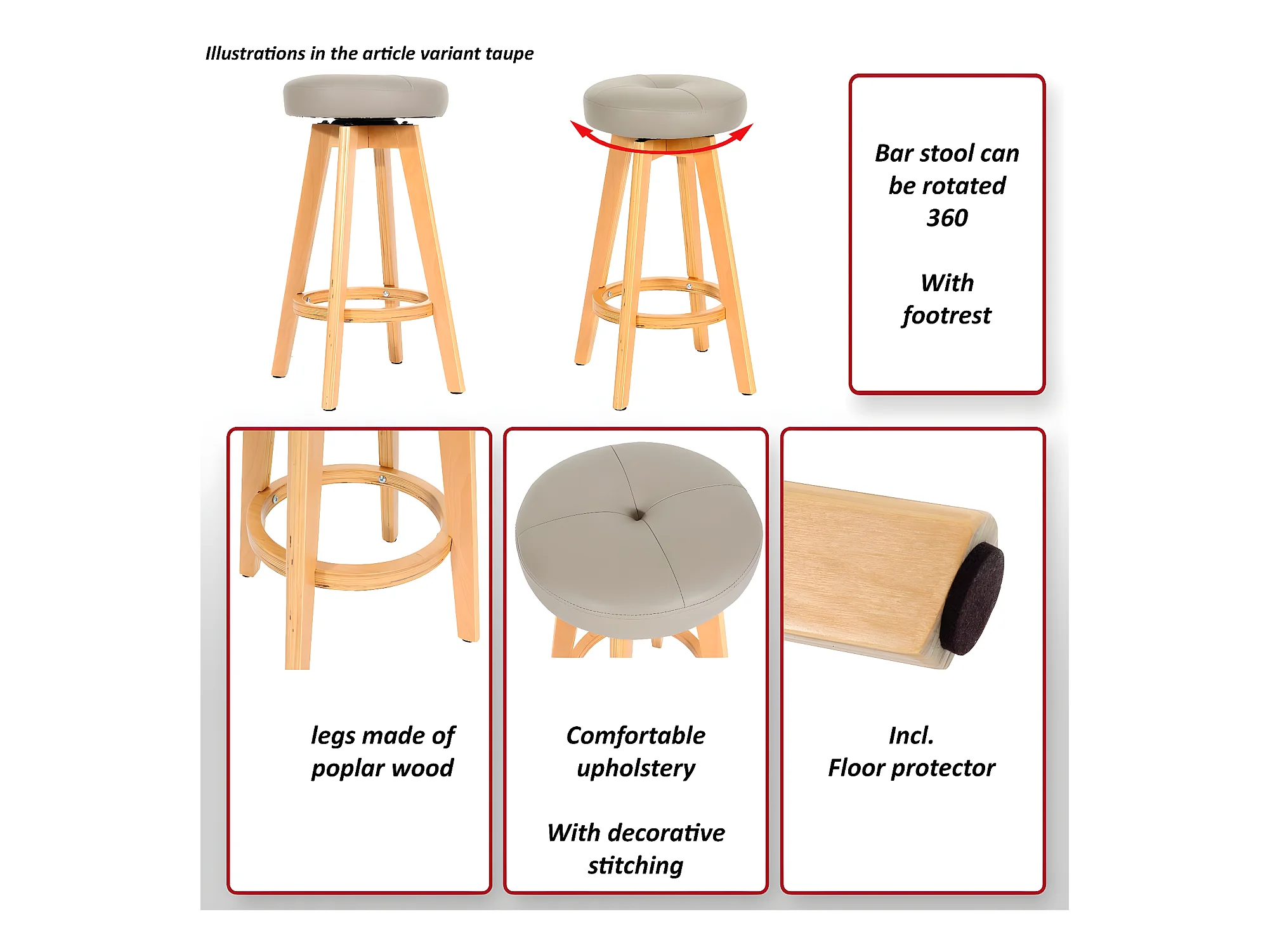 Tabouret de bar Boras (lot de 2) pivotant, bordeaux, pieds clairs