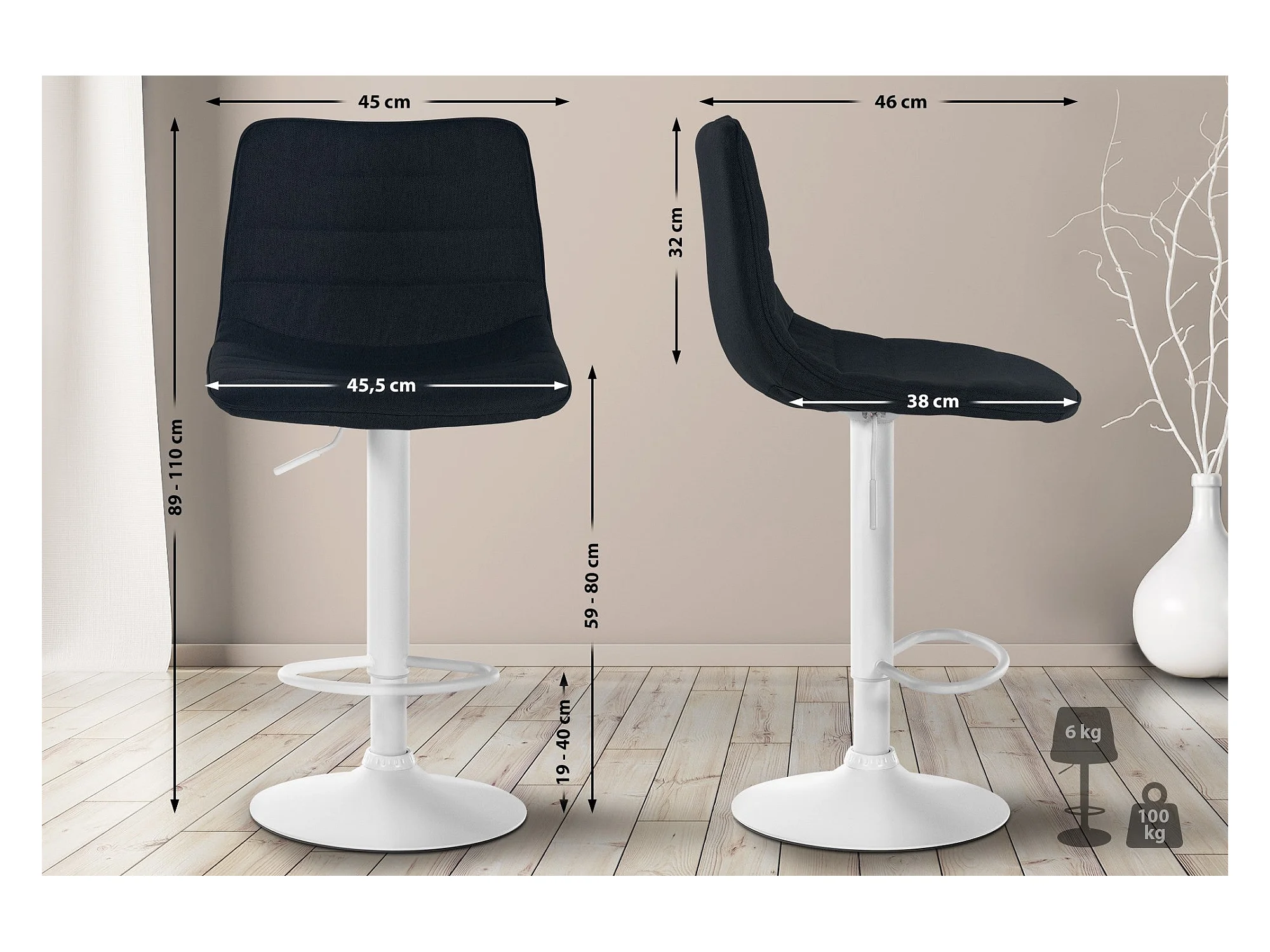 Tabouret de bar blanc hauteur ajustable