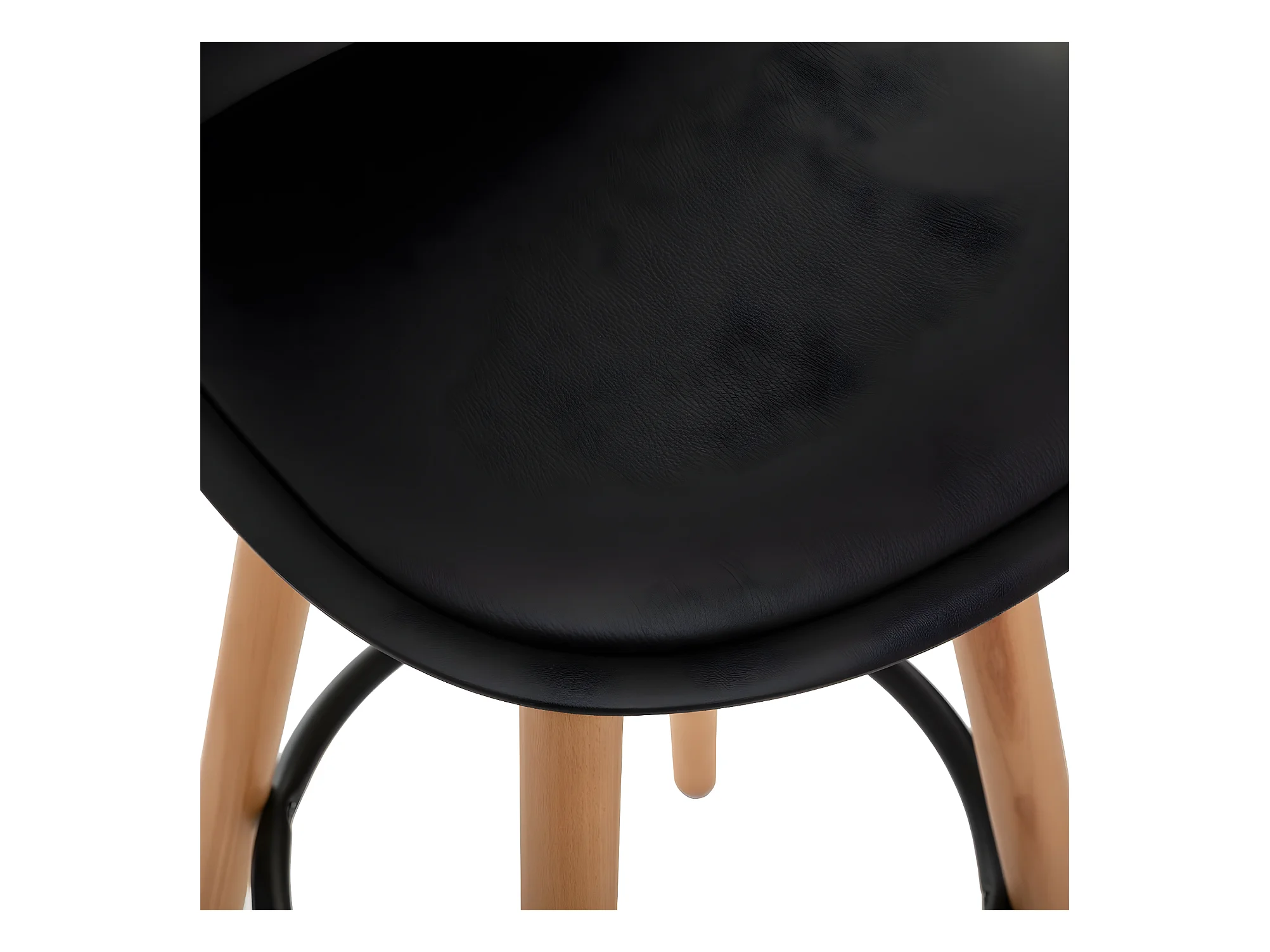 Tabouret nordique coussin simili cuir noir et pieds hêtre clair Tula 67cm
