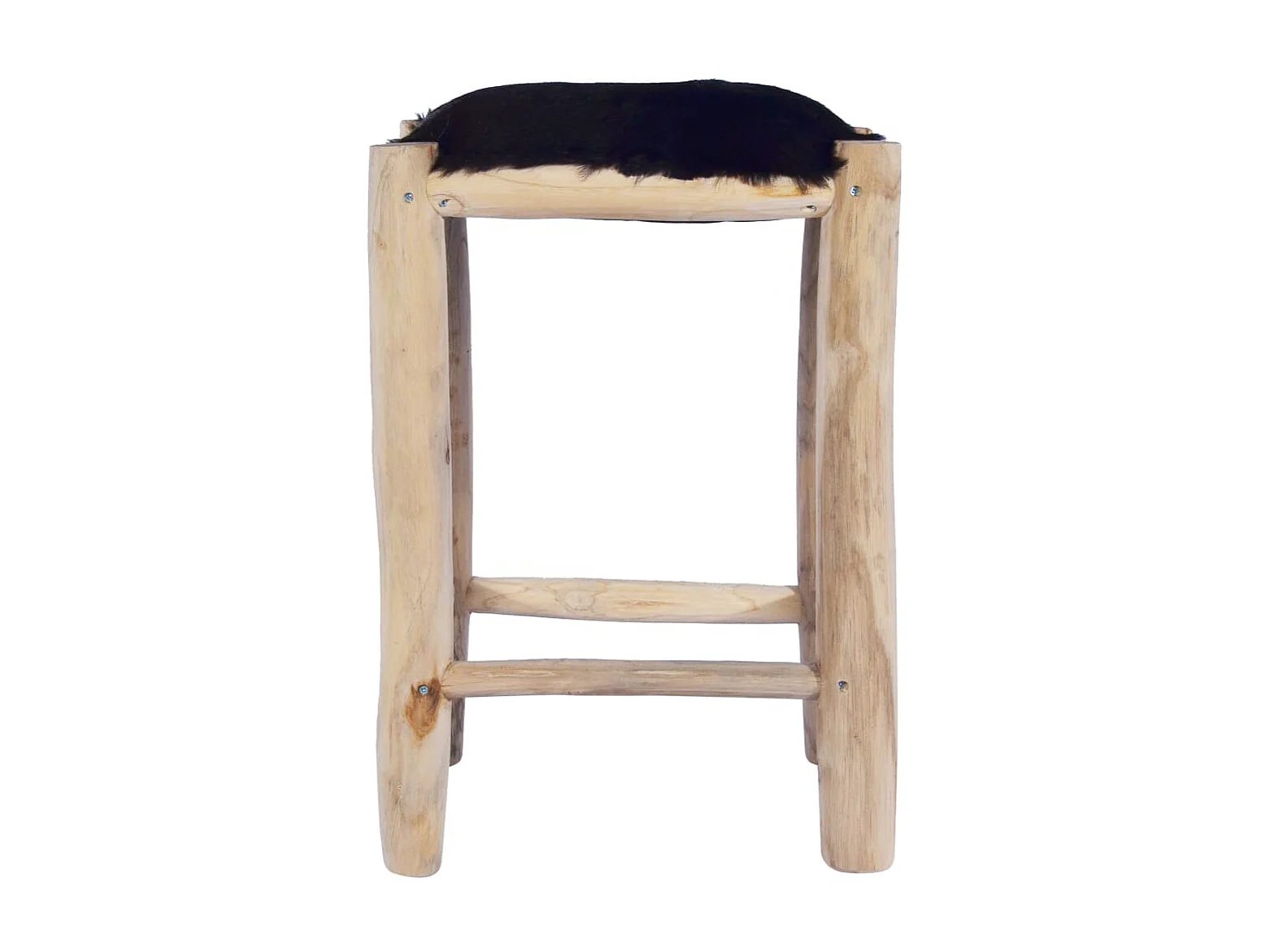 Tabouret de bar Cuir de chèvre véritable et bois de teck massif