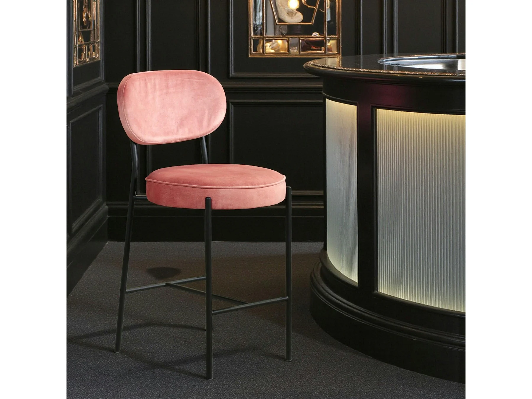 Tabouret de bar design en velours rose pâle FLORENCE (lot 2)