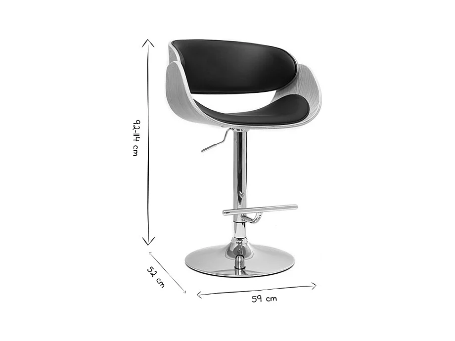 Tabouret de bar design réglable noir et bois foncé VASCO