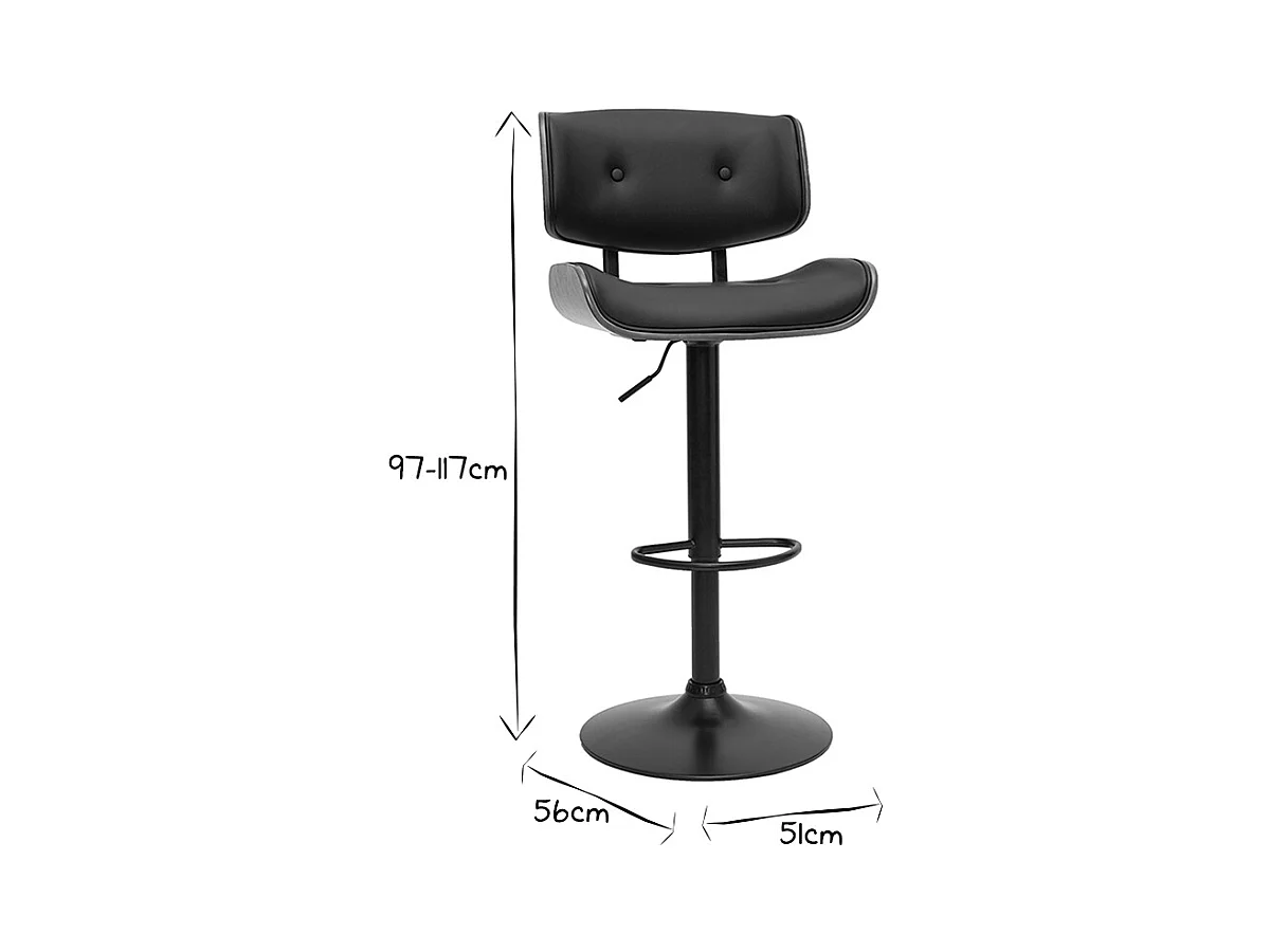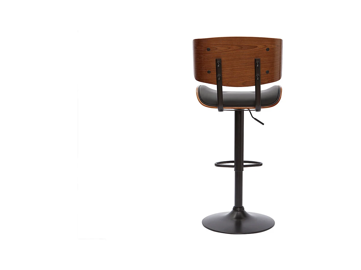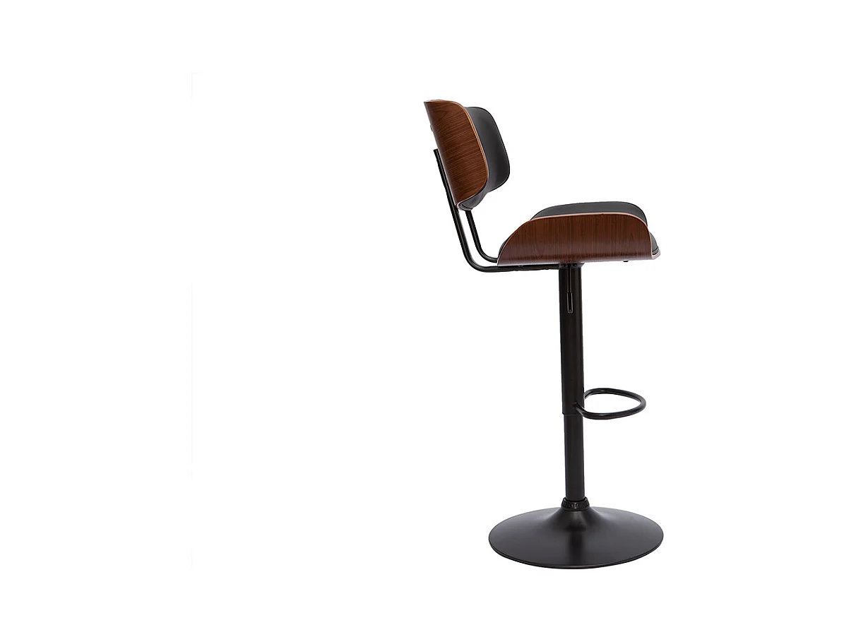 Tabouret de bar design réglable noir et bois foncé BENT
