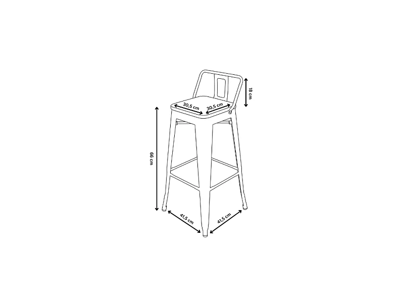Tabouret de bar en métal brut aspect galvanisé style industriel - Sans dossier - Hauteur 66 cm