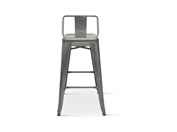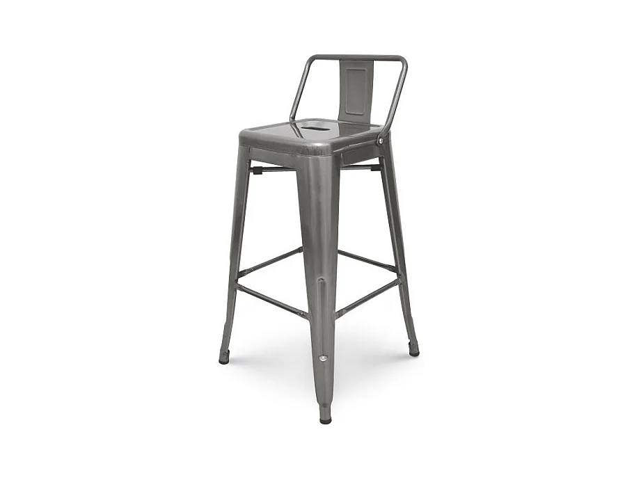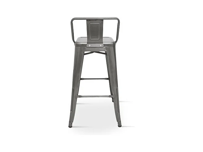 Tabouret de bar en métal brut avec dossier aspect galvanisé - Hauteur 66 cm