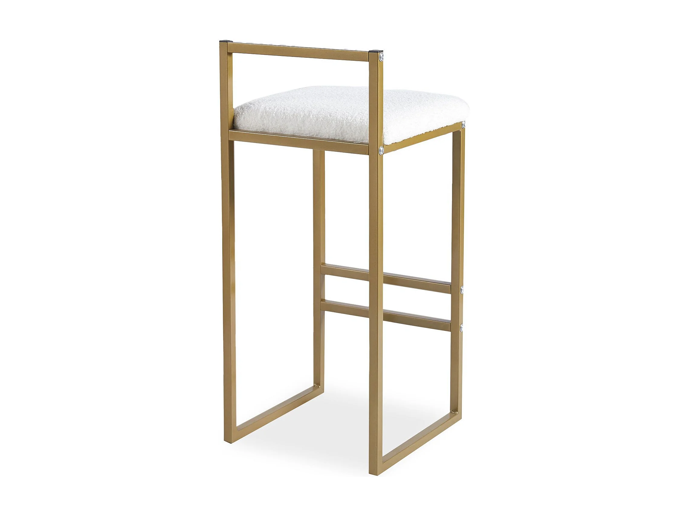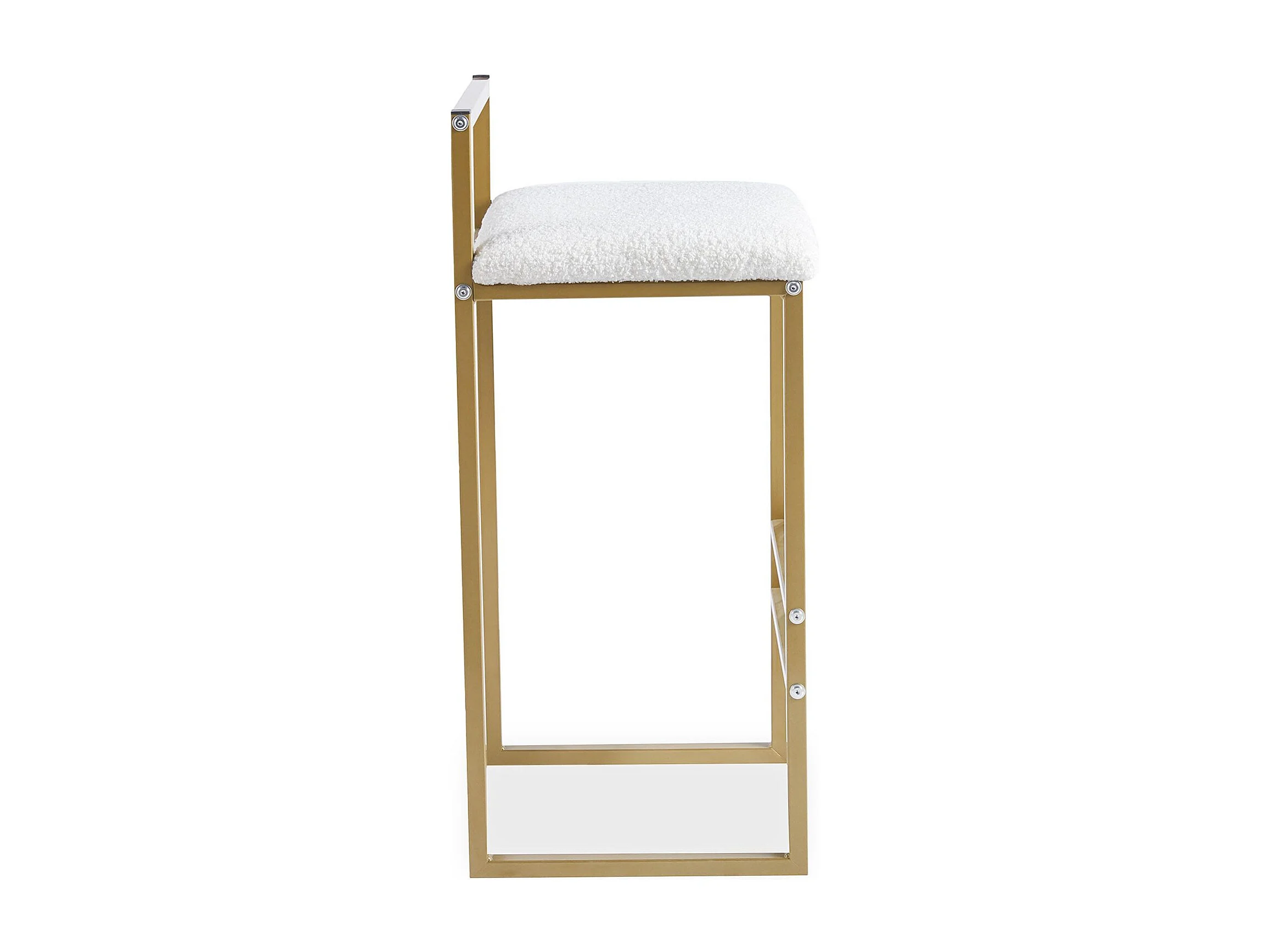 Tabouret de bar en métal Drakkar Or et Tissu bouclette Crème