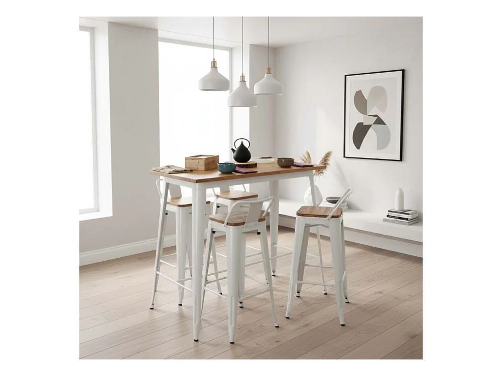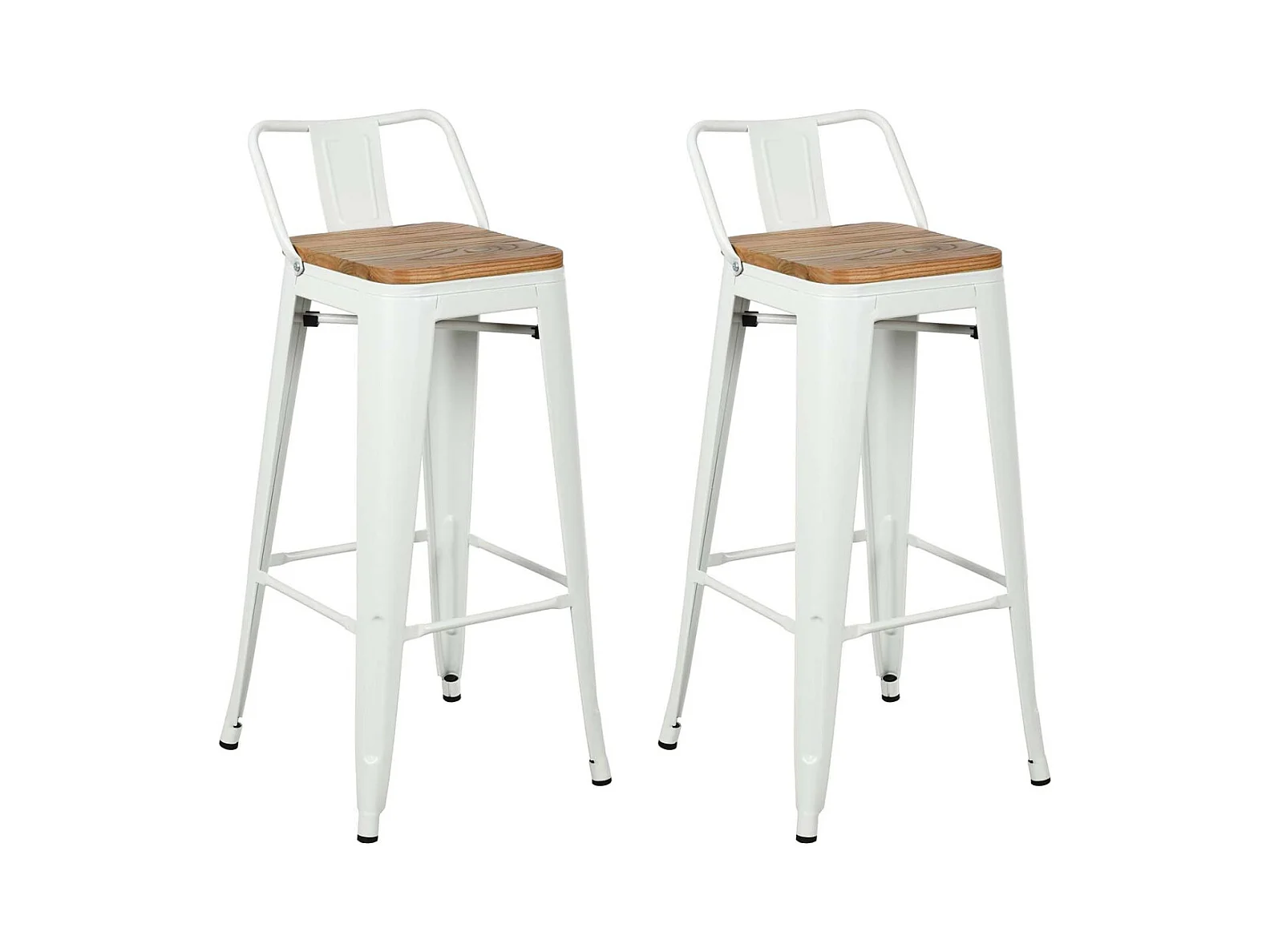 Tabouret de bar en métal laqué et bois d'orme huilé (Lot de 2)