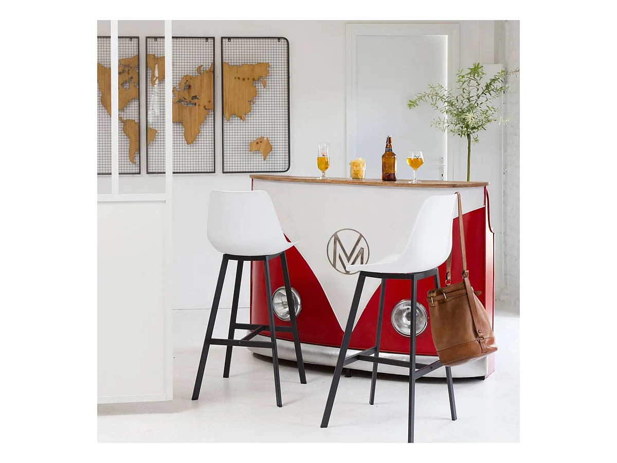 Tabouret de bar blanc et métal noir Marius (lot de 2)