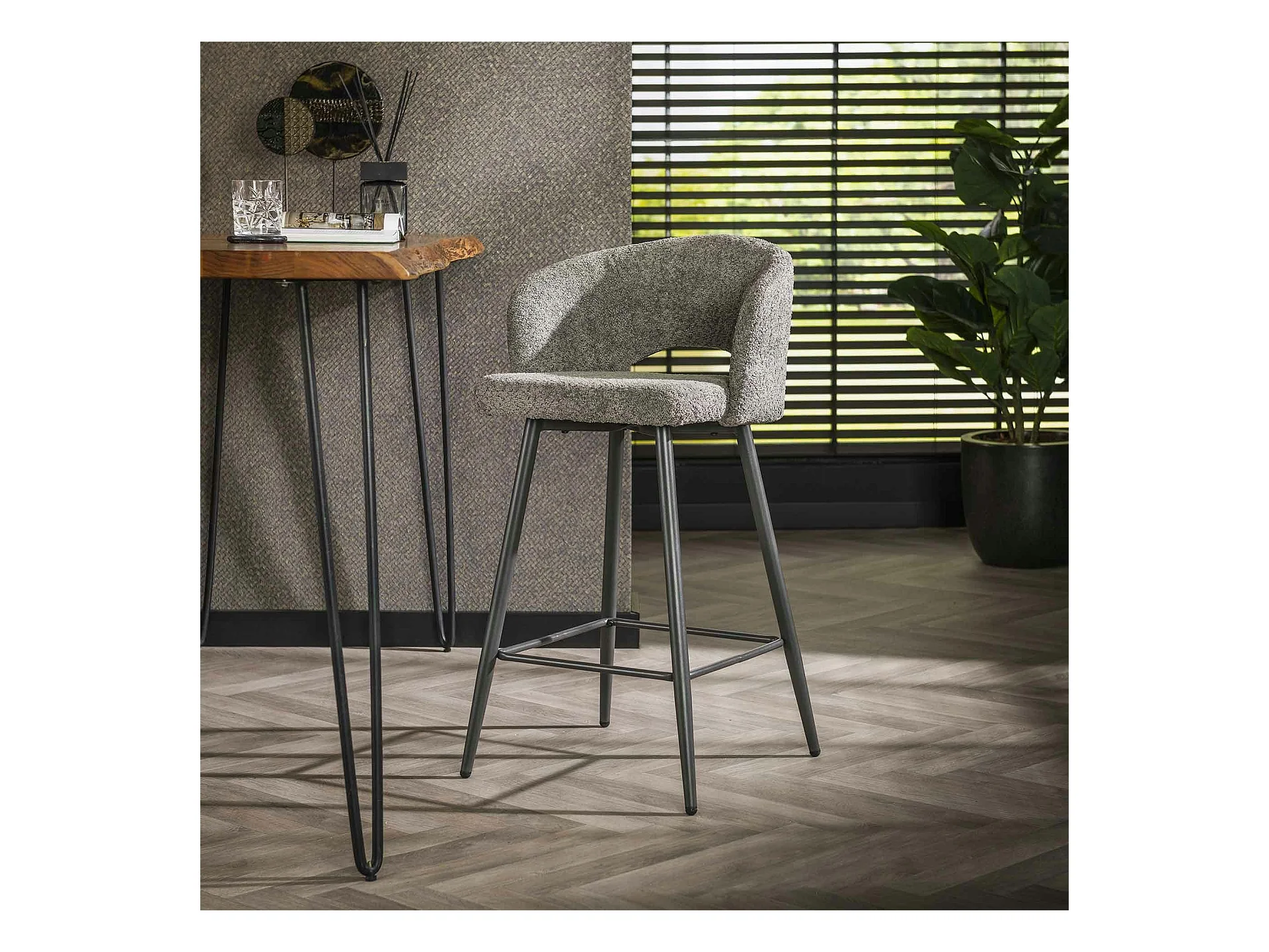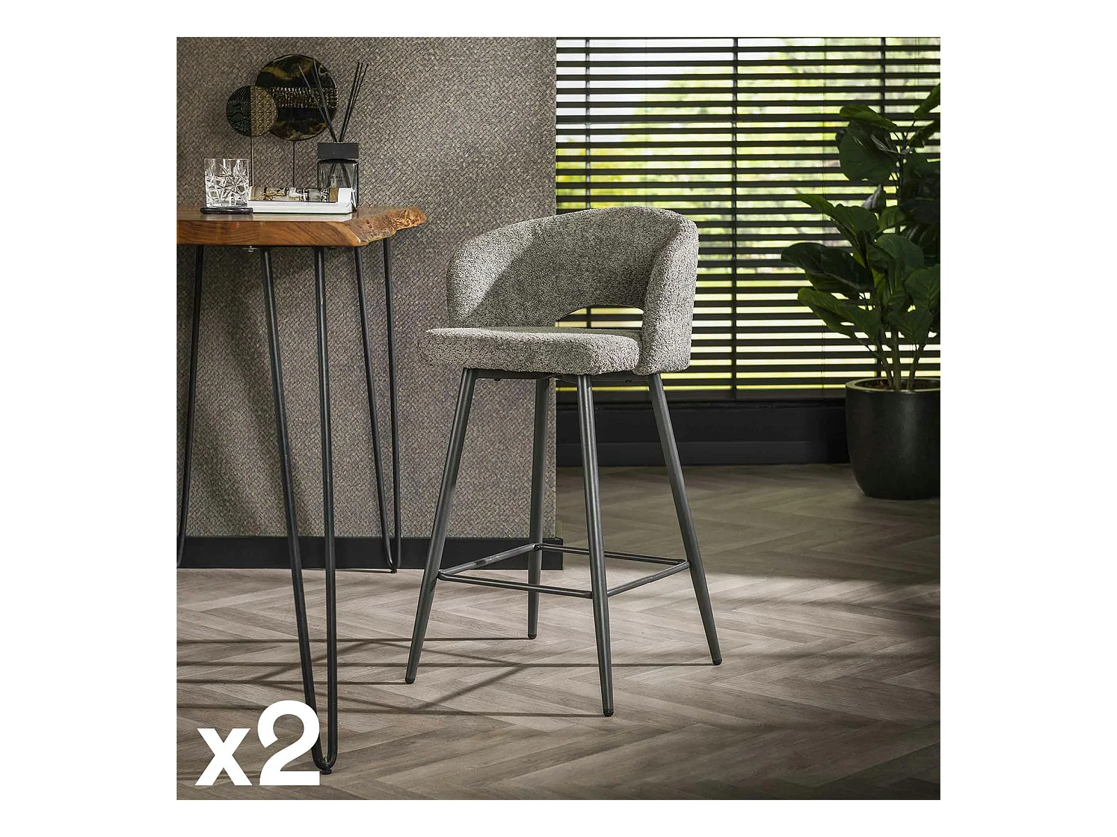 Tabouret de bar en tissu bouclette gris avec dossier ouvert (lot de 2) GALWAY