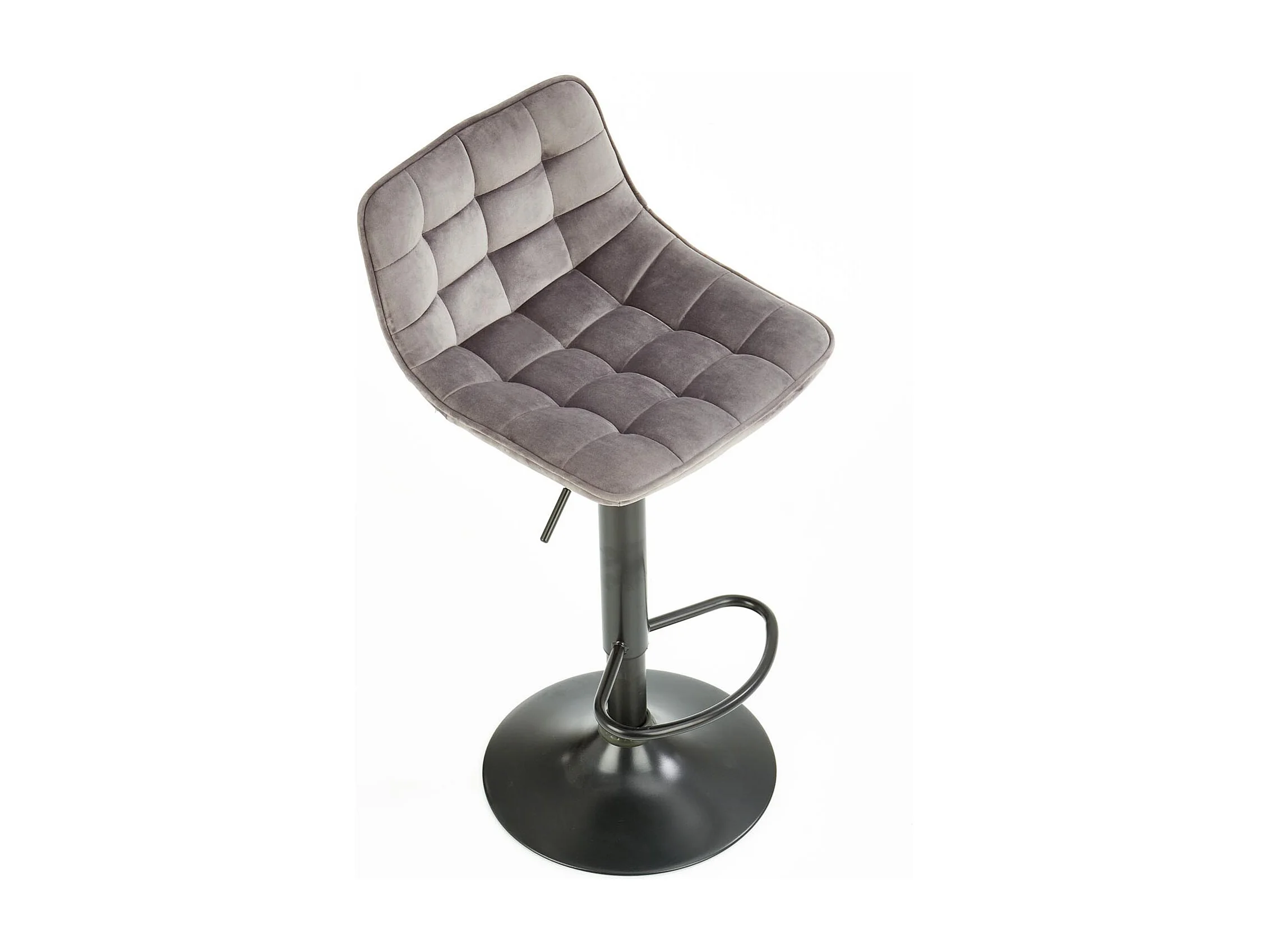 Chaise de bar ajustable en hauteur en velours gris avec pied en métal EDEN