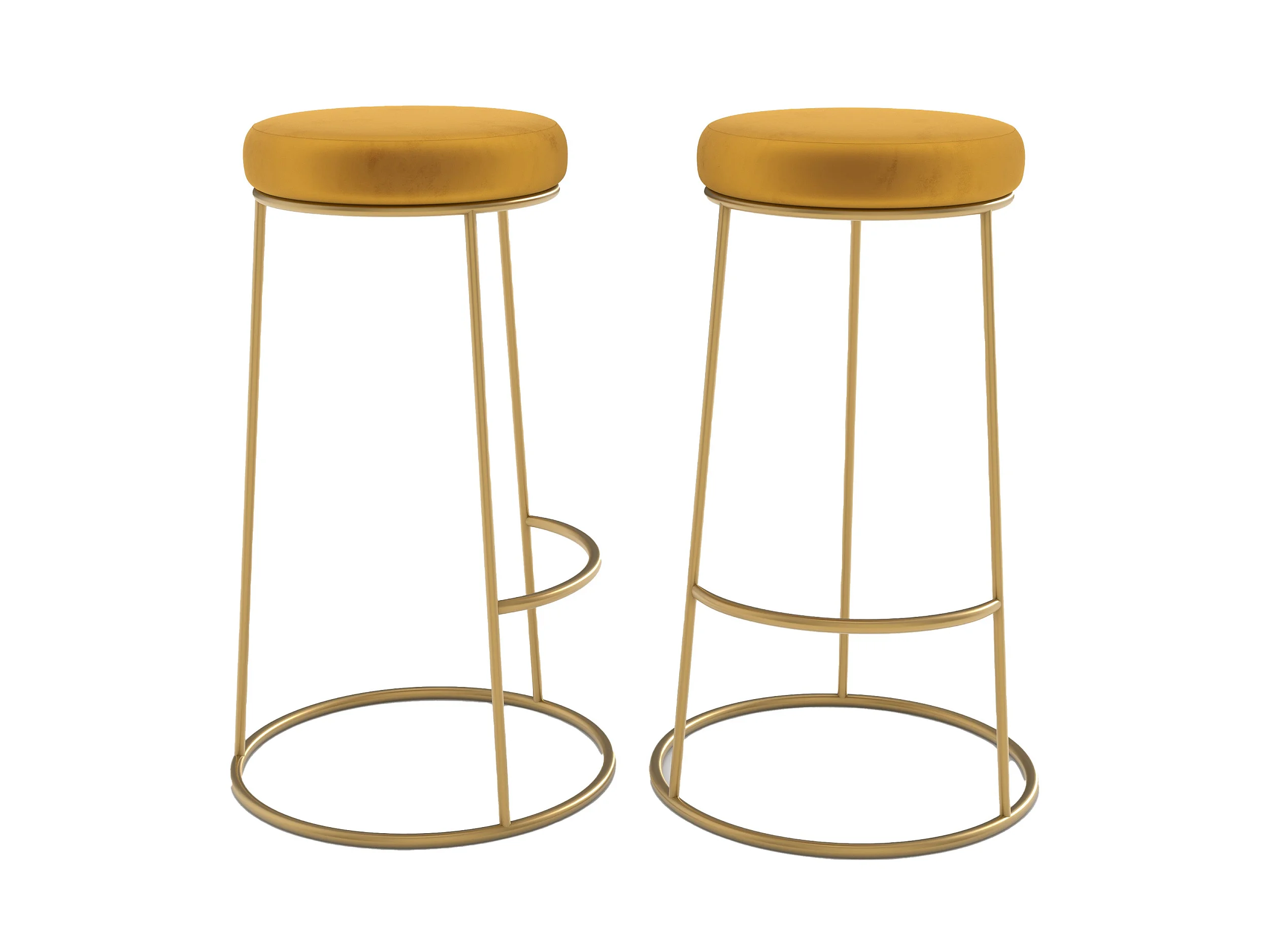 Lot de 2 tabourets de bar 73 cm en velours jaune curry - Kendal