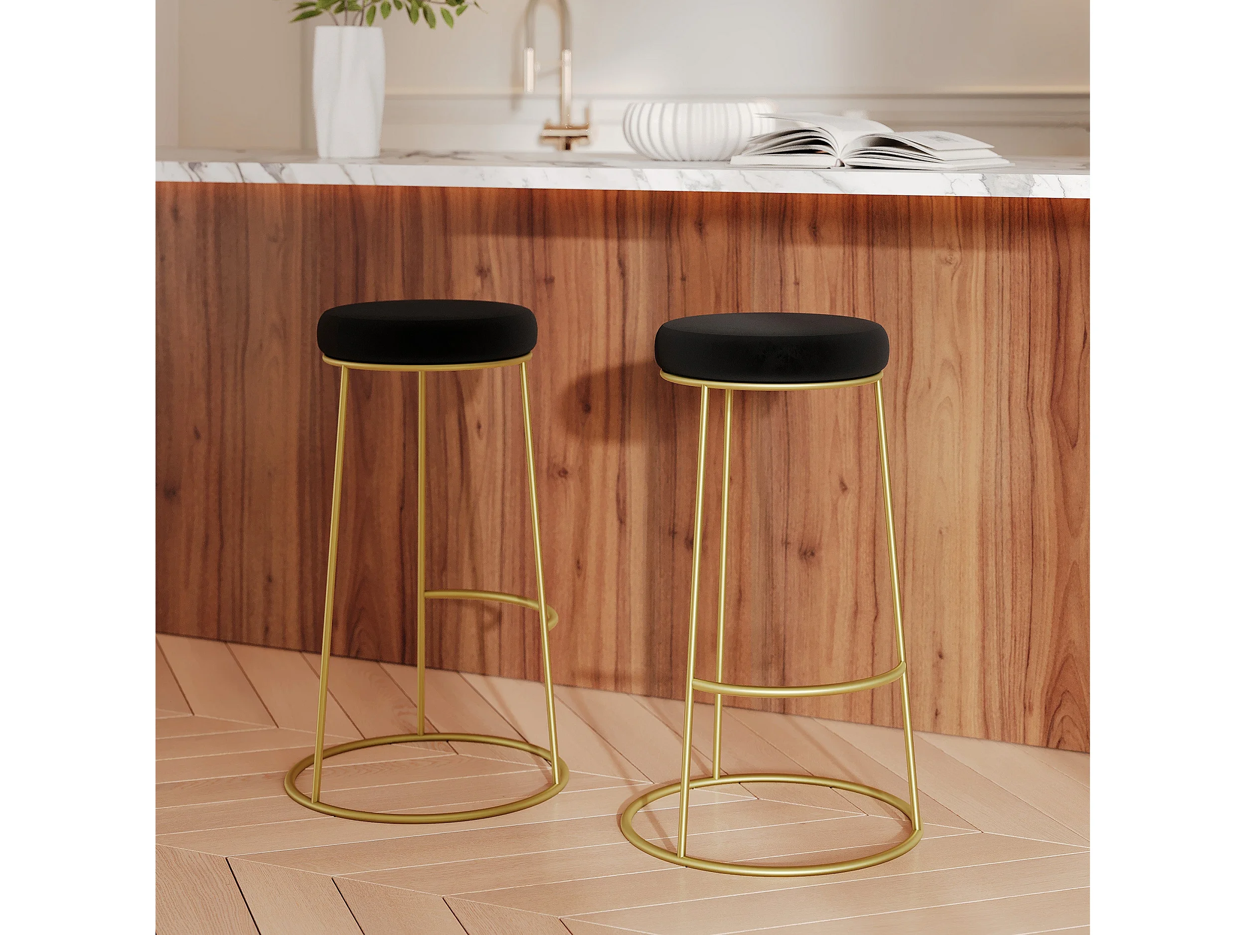 Lot de 2 tabourets de bar 73 cm en velours noir - Kendal
