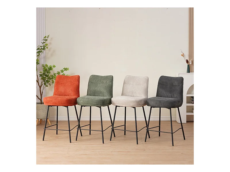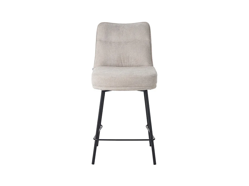 Tabouret de bar rembourré en tissu doux écru pied métal - JULIE