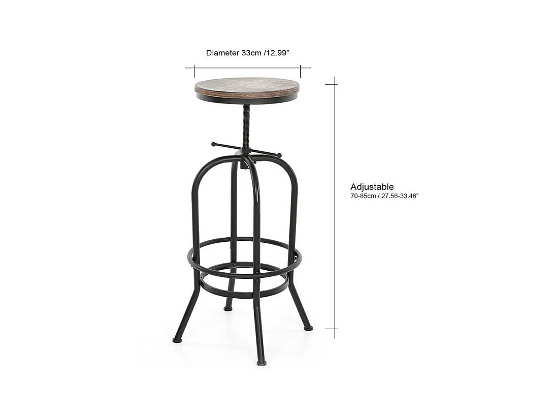 Tabouret de bar LOFT à vis style industriel réglable en hauteur