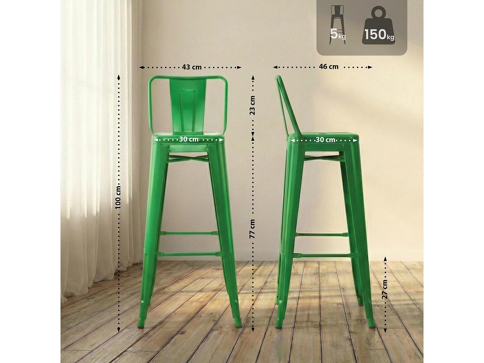 Tabouret de bar - Métal - Vert - Mason