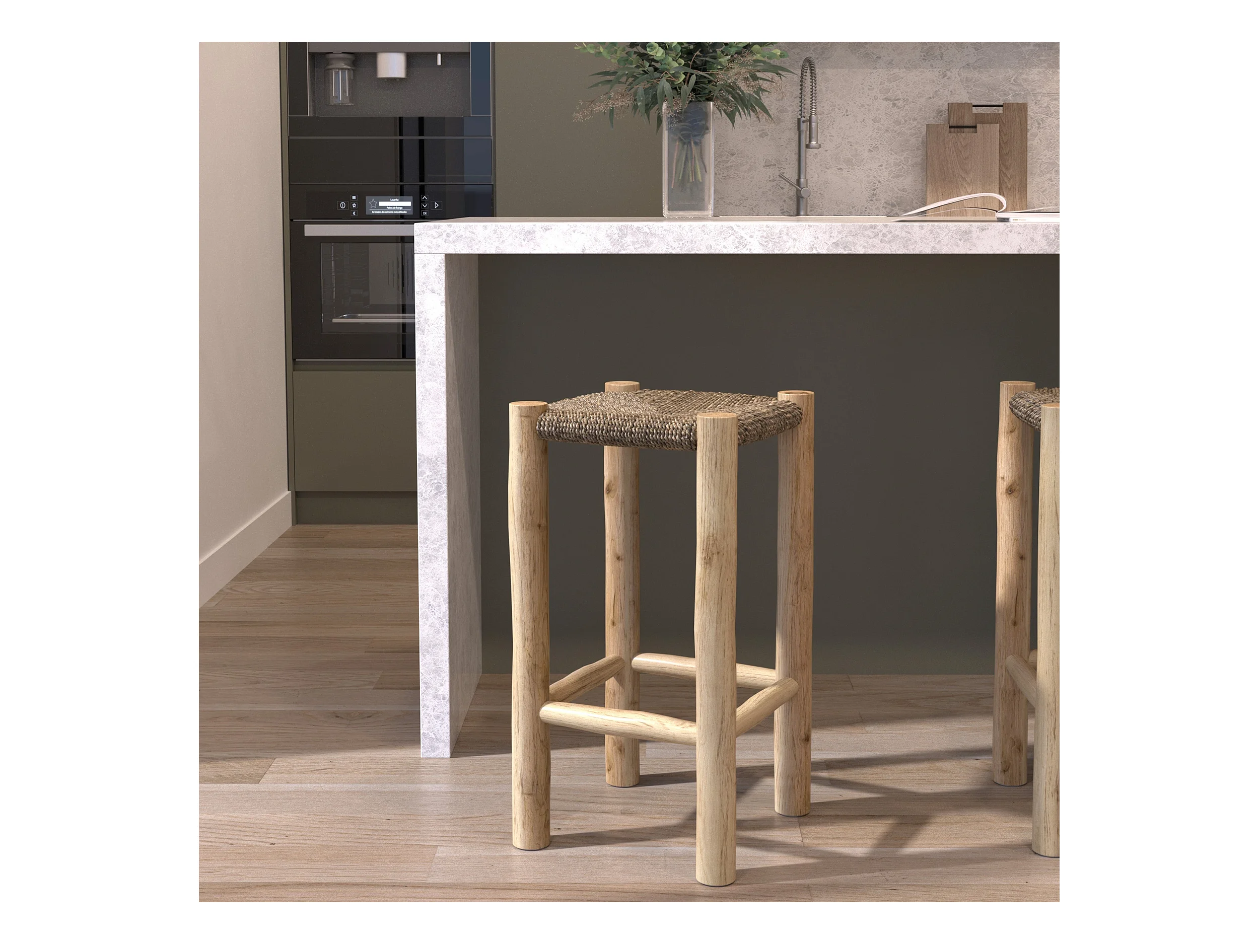 Tabouret pour îlot central 65 cm en tressage et bois - Kepler