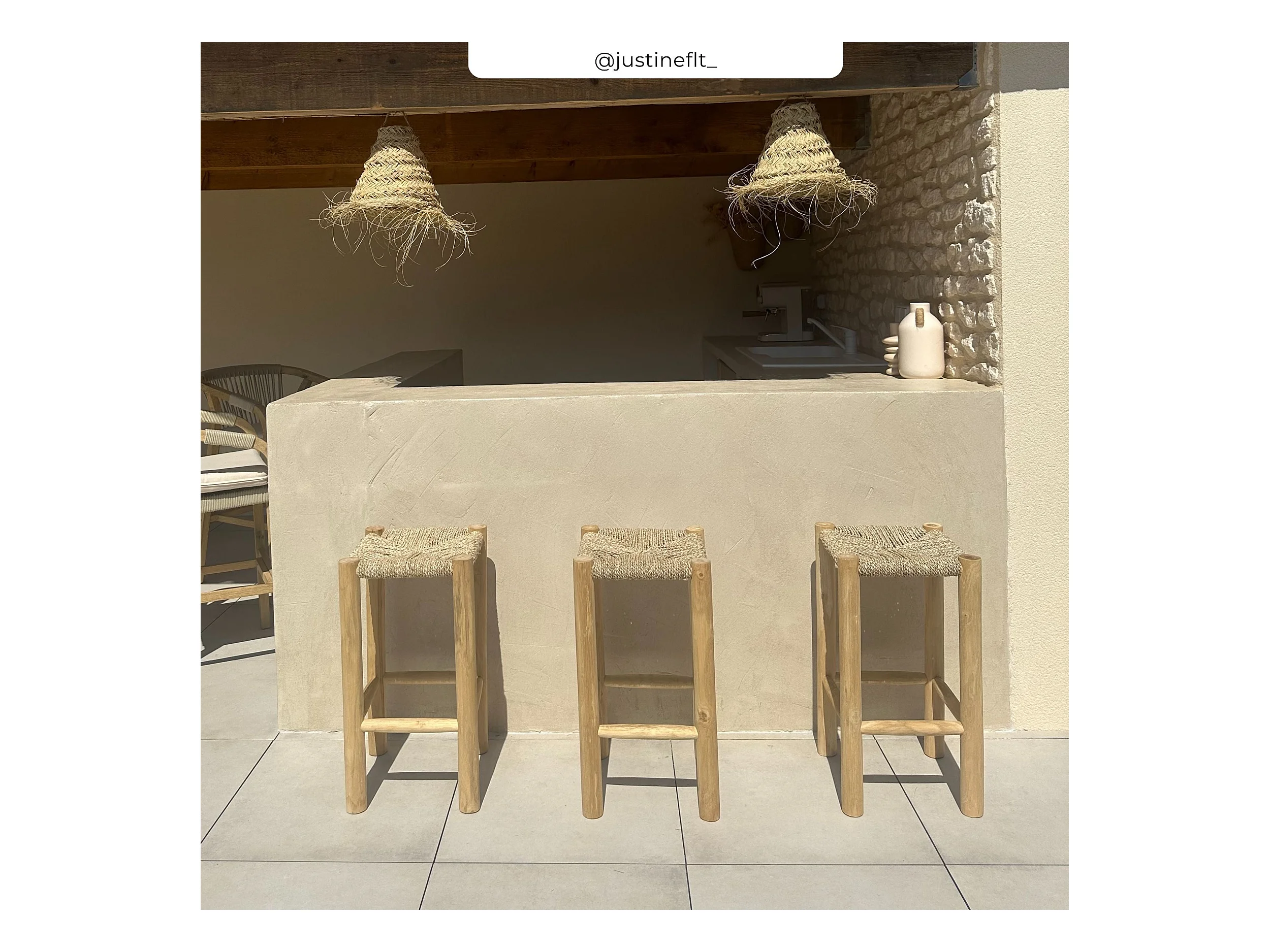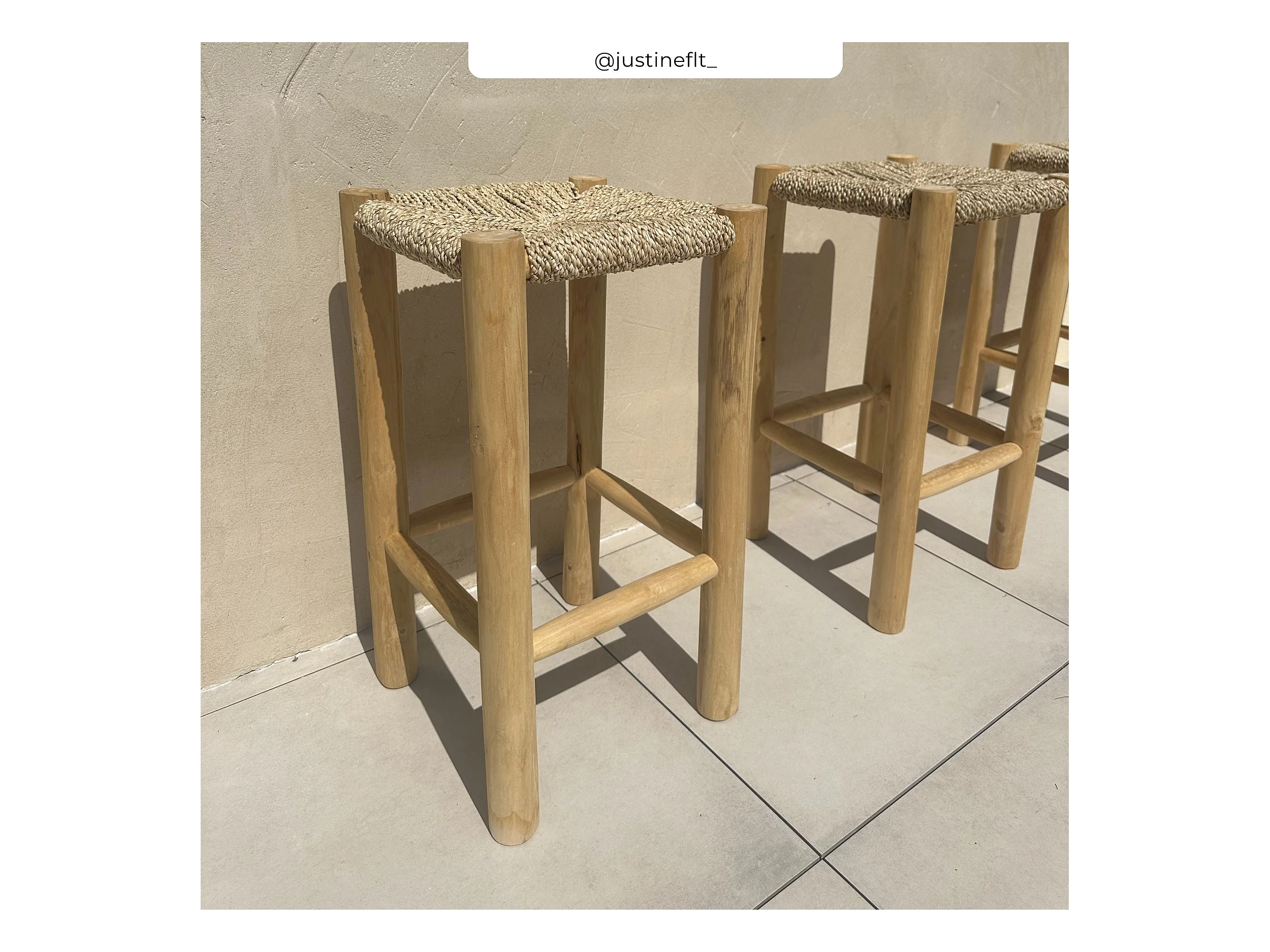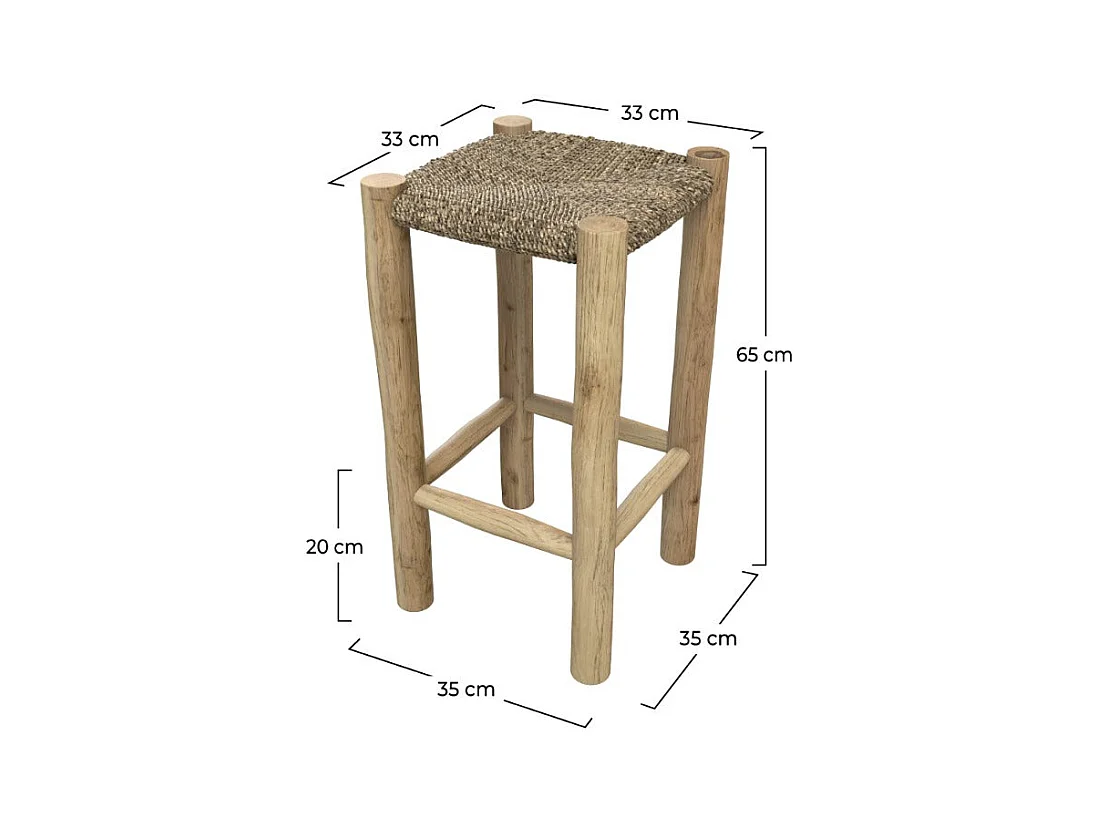 Tabouret pour îlot central 65 cm en jonc de mer et teck - Jovan