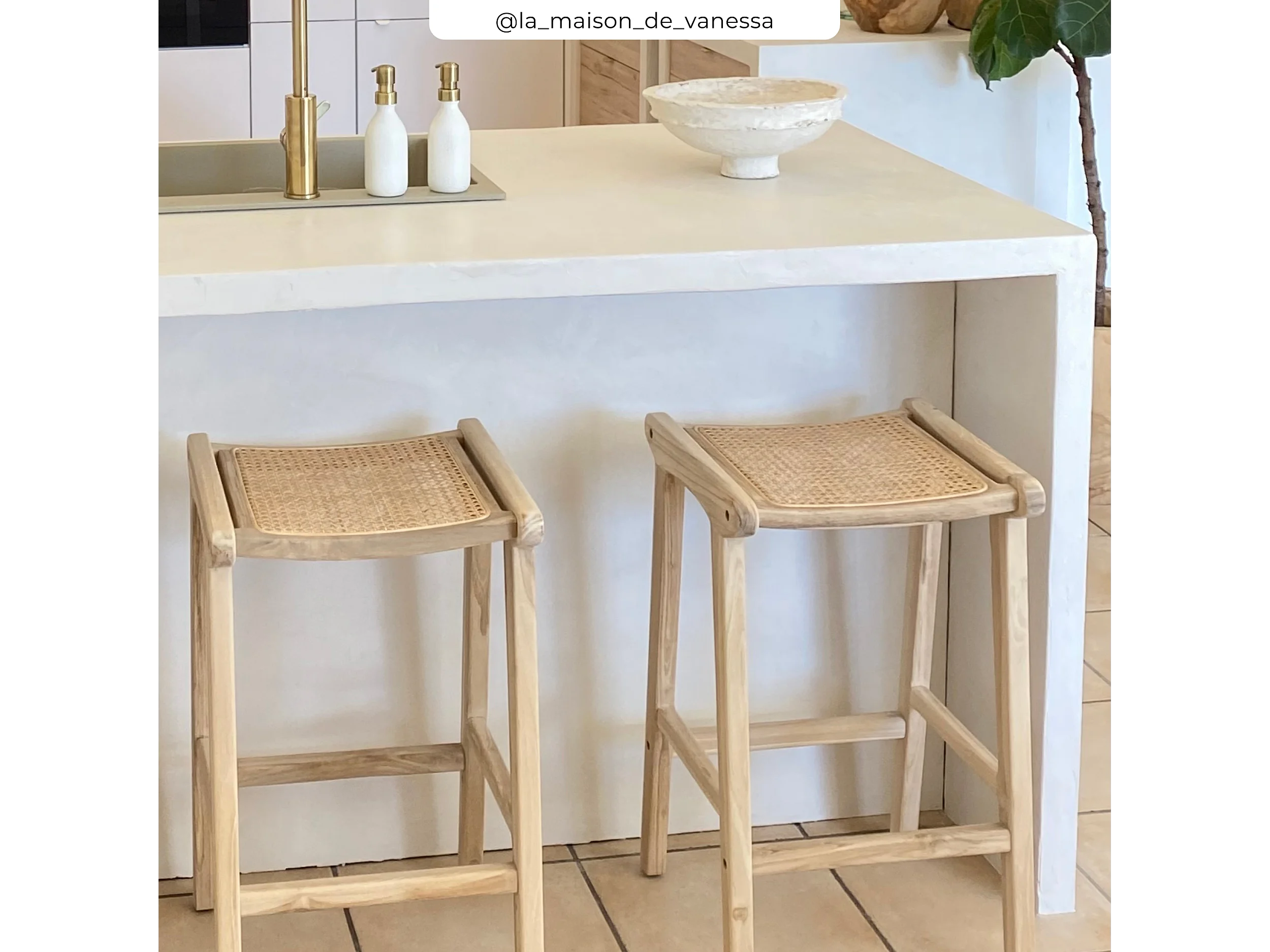 Tabouret pour ilot central 65 cm en teck et rotin - Kaïa
