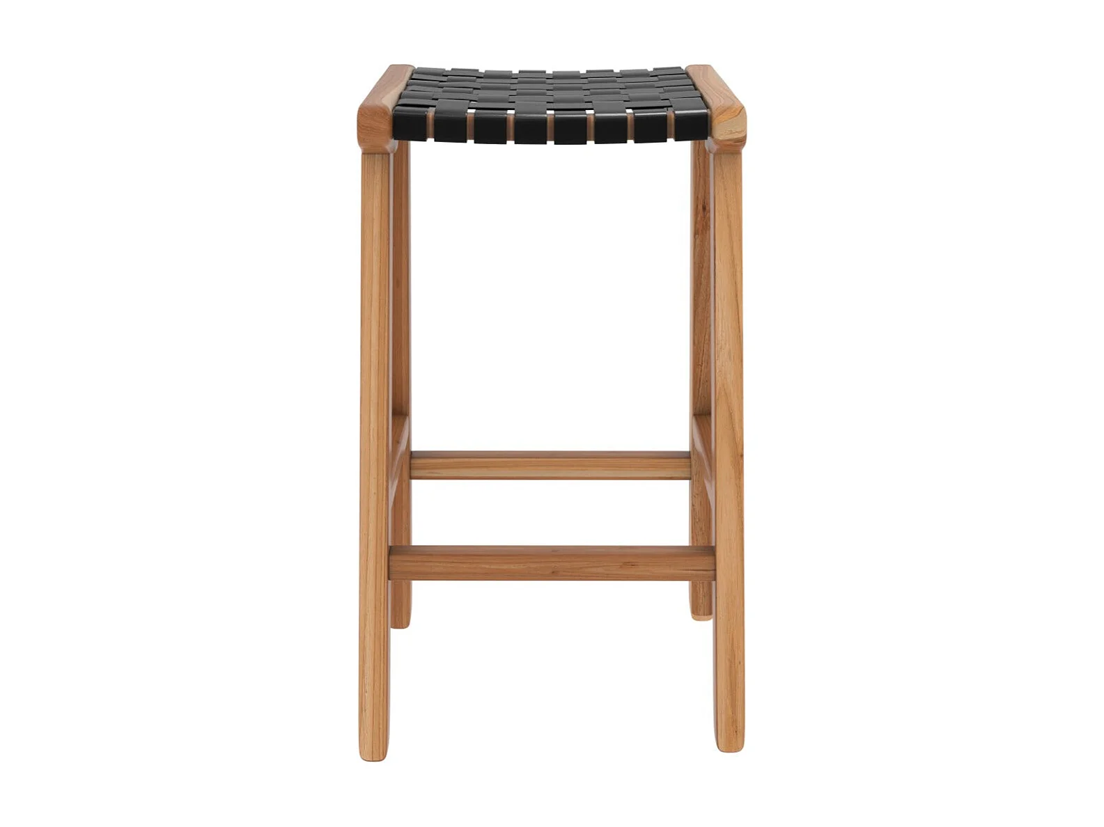 Tabouret pour îlot central 68 cm en teck et cuir tressé noir - Kuna