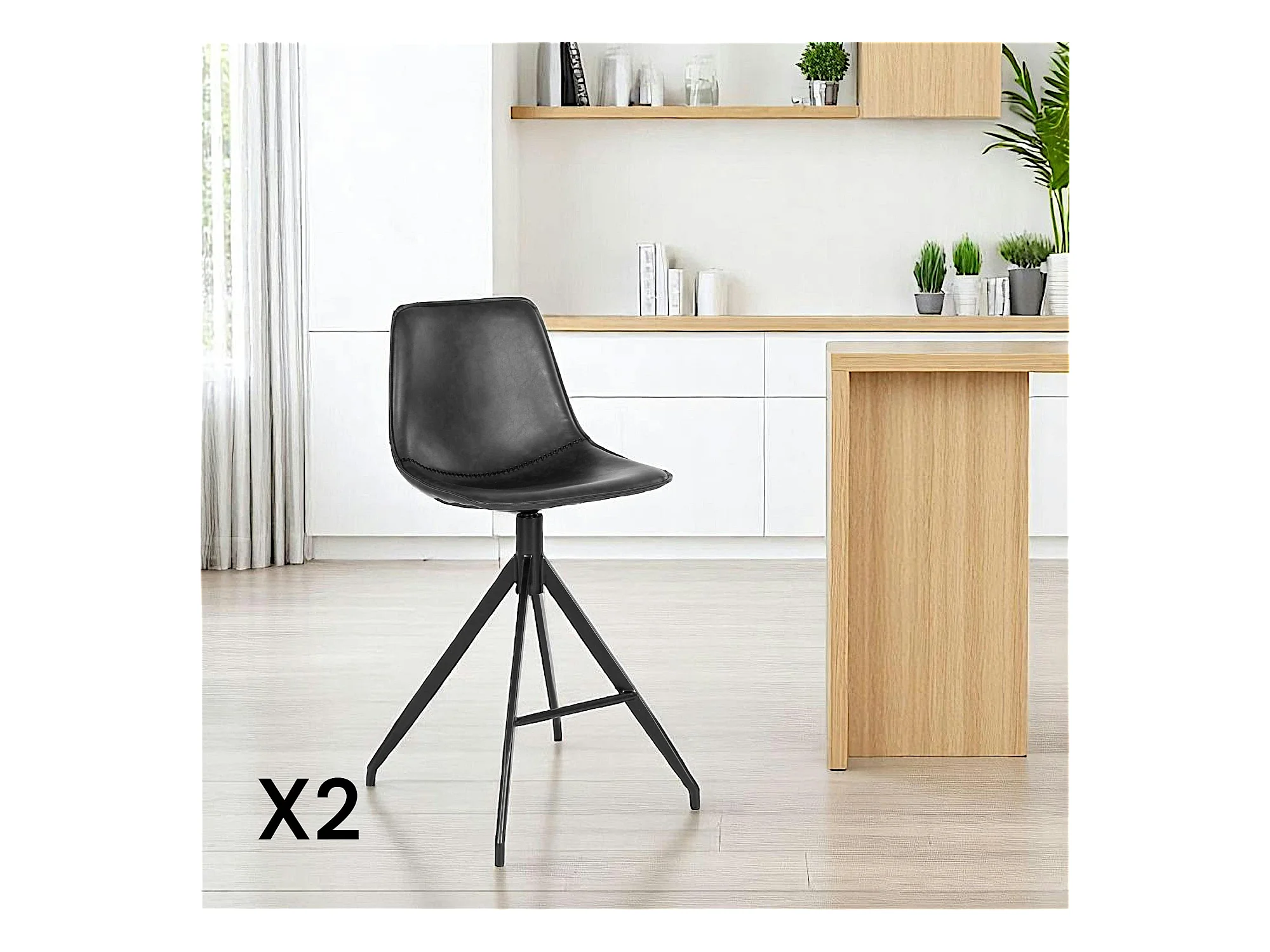Tabouret de bar noir avec couture (lot de 2) AMSTERDAM