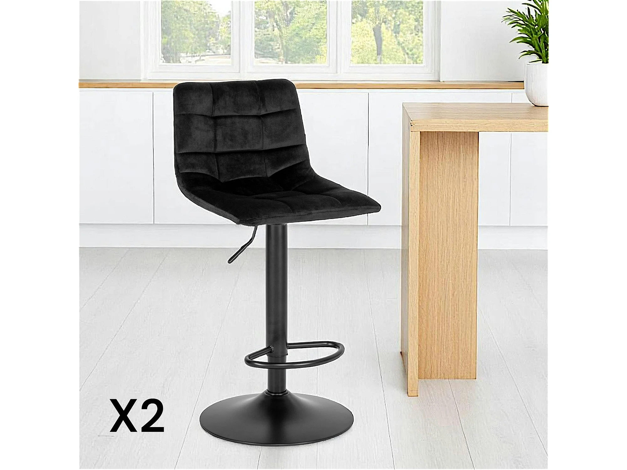 Tabouret de bar noir velours, réglable en hauteur et pivotant (lot de 2) SAVONE