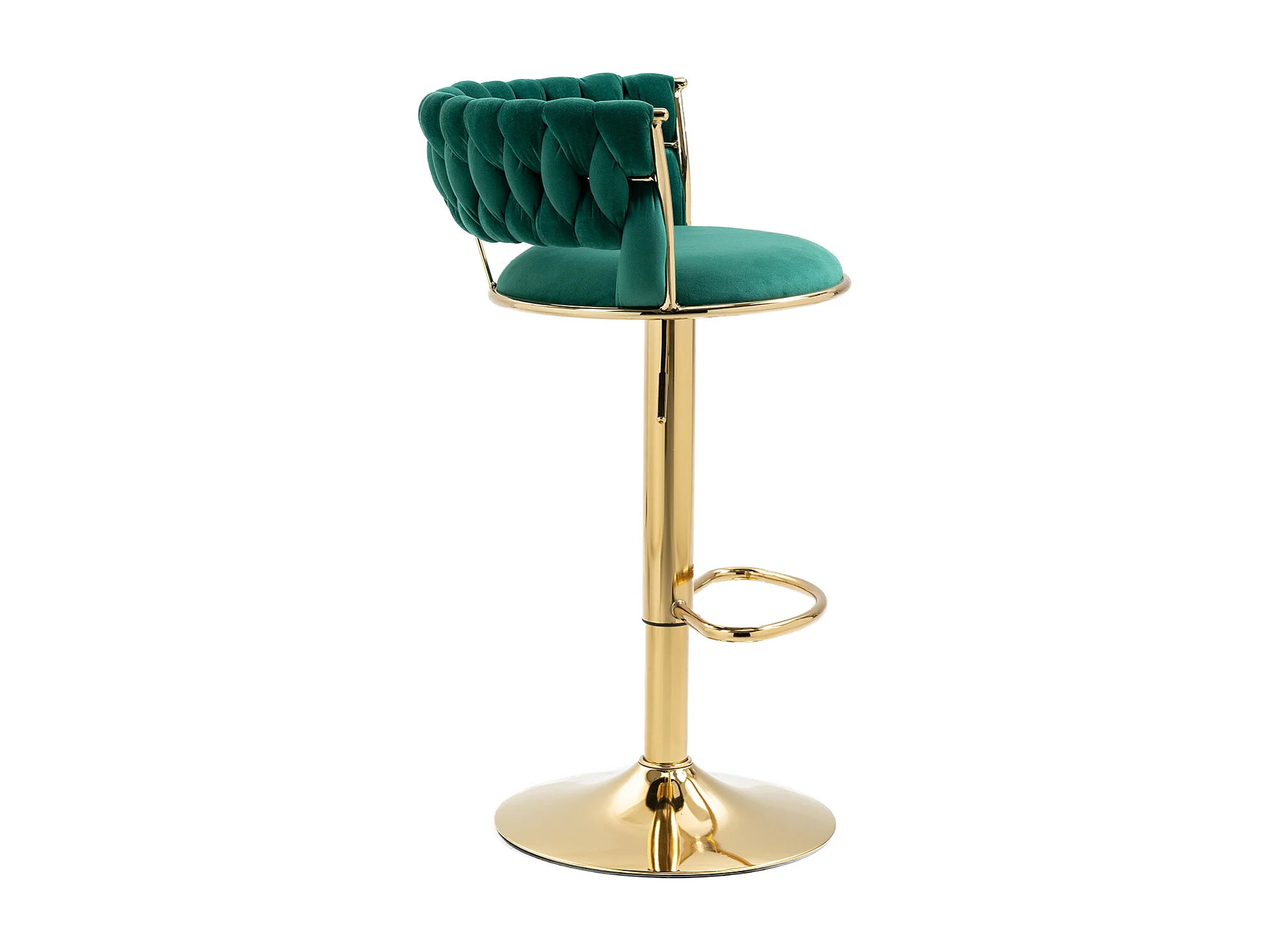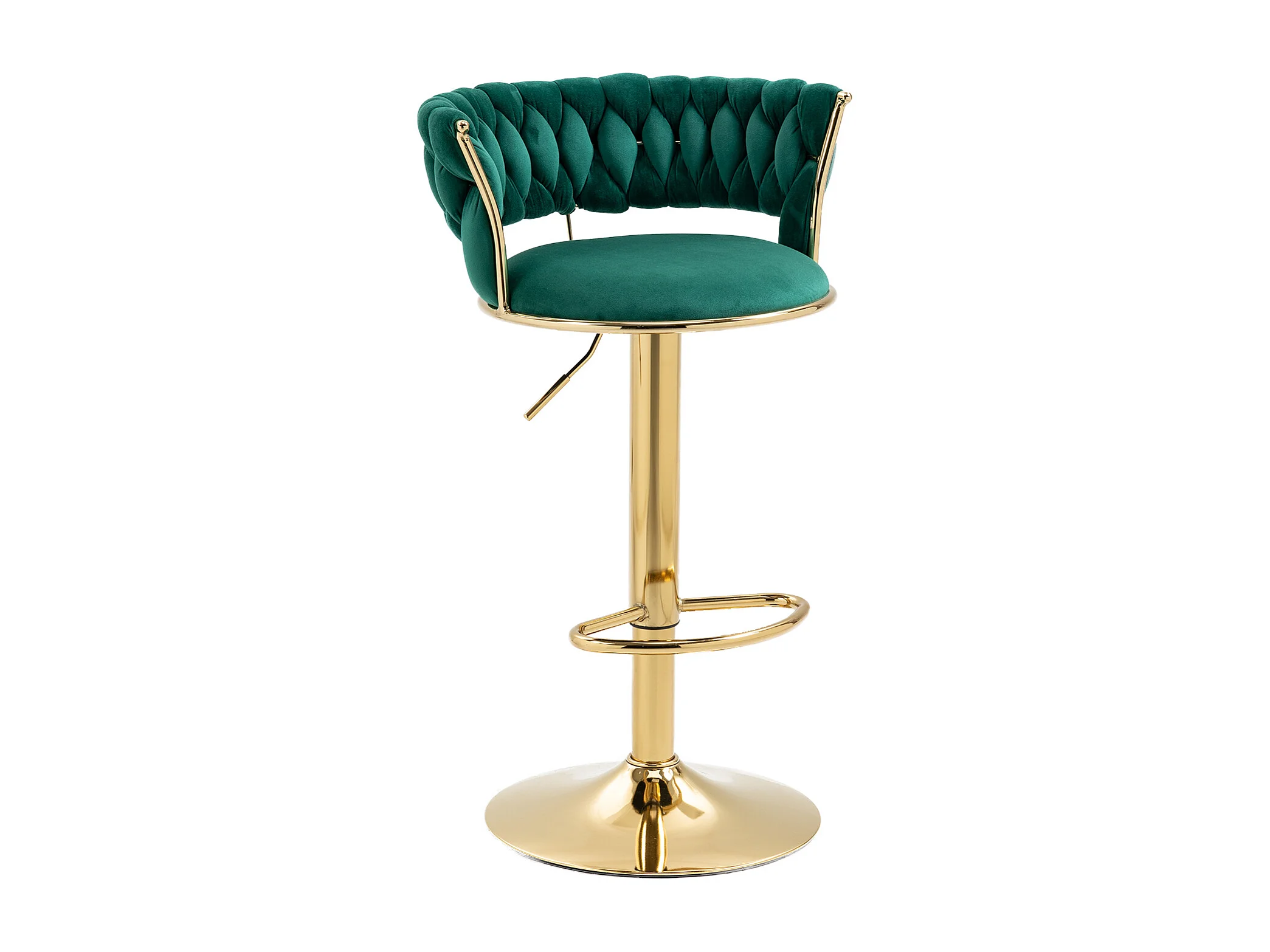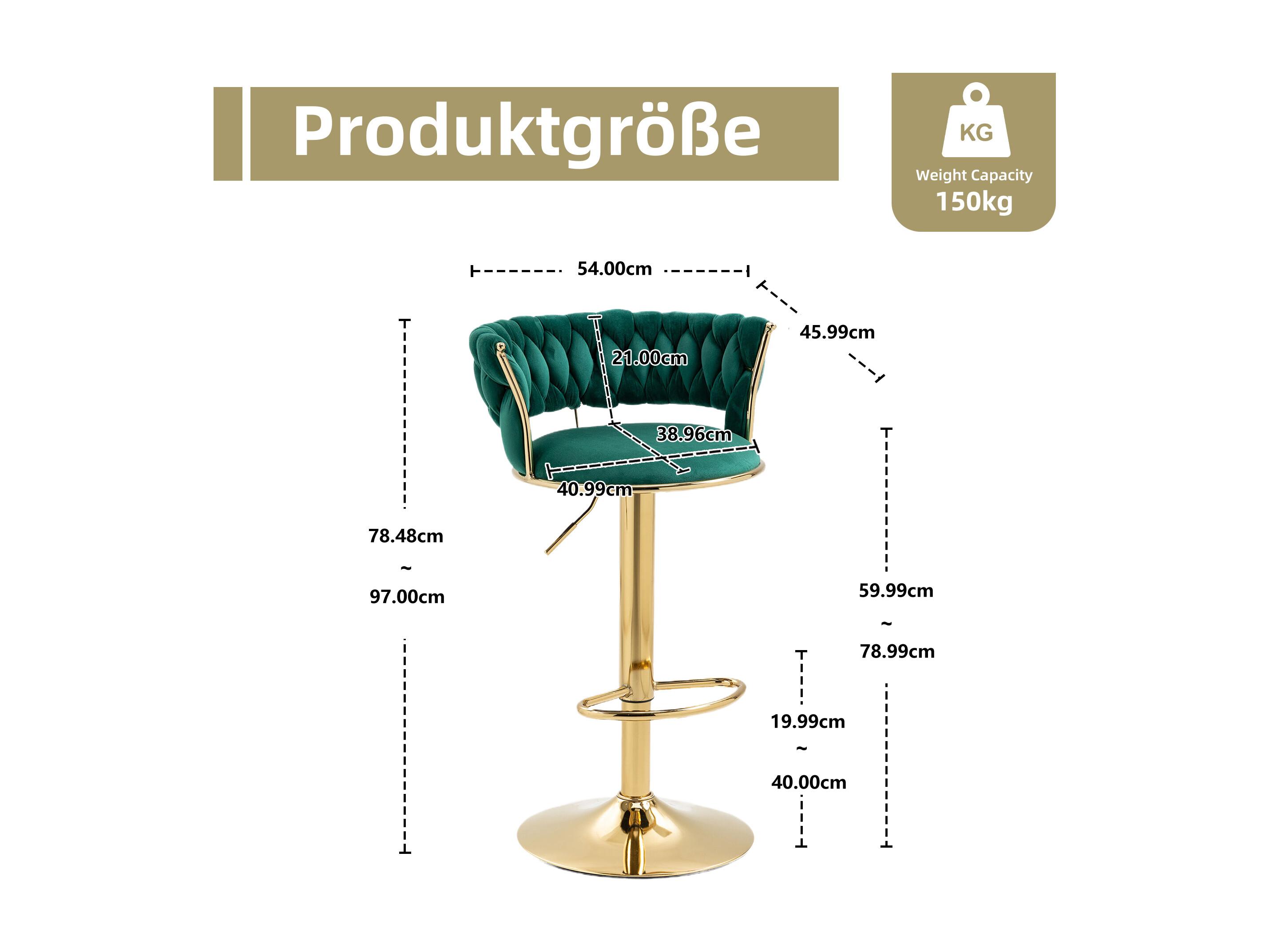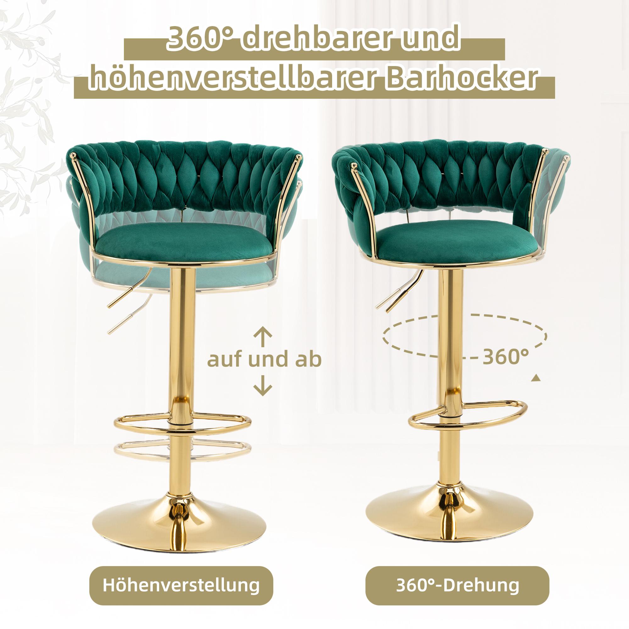 Tabouret de Bar Pivotant 360° en Velours, Set de 2, Hauteur Réglable avec Dossier Tissé à Main, Confort Ergonomique et Base en Métal Doré