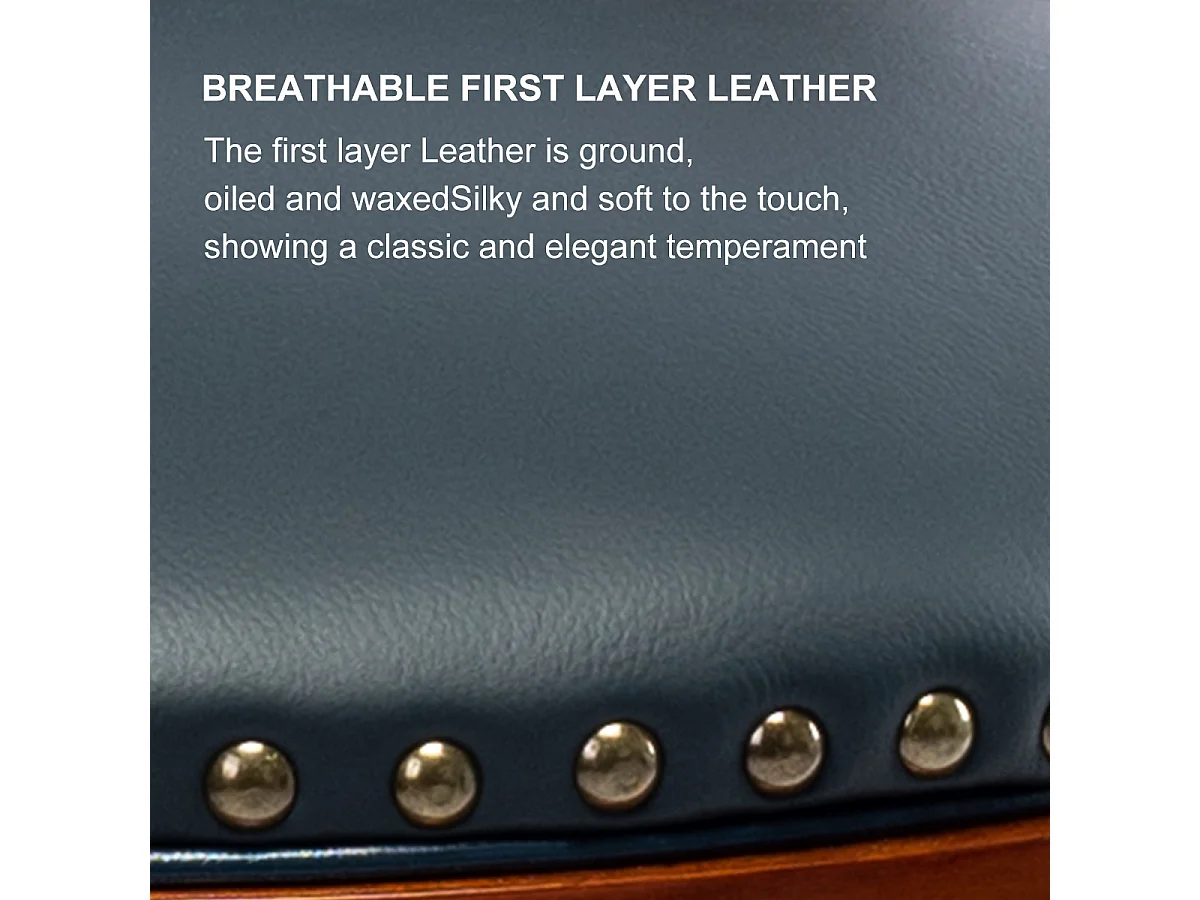 Tabouret de bar pivotant - Assise cuir bleu - Bois - Couleur noyer