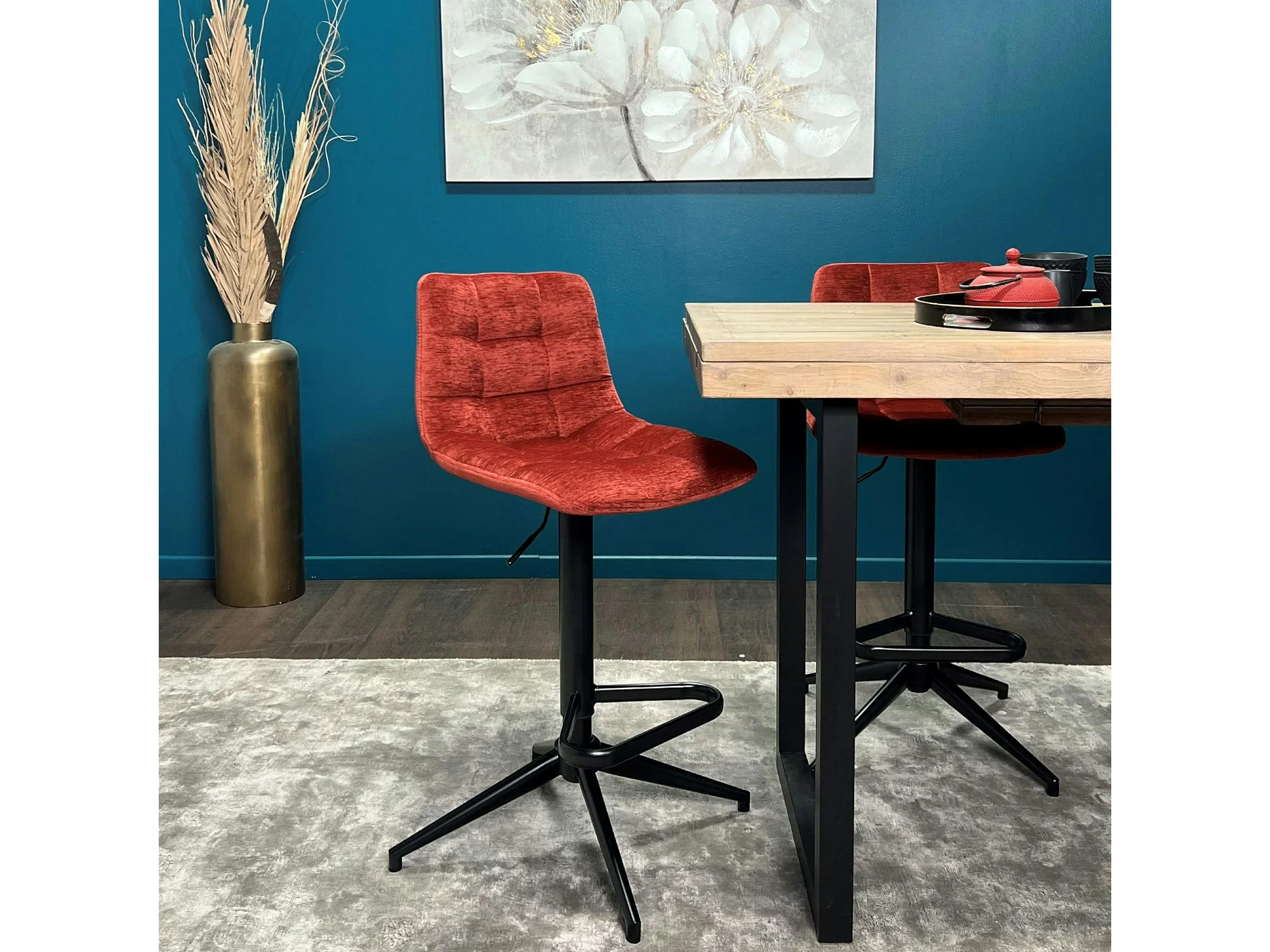 Tabouret de bar pivotant motif damier, velours rouge (lot de 2) PALERME