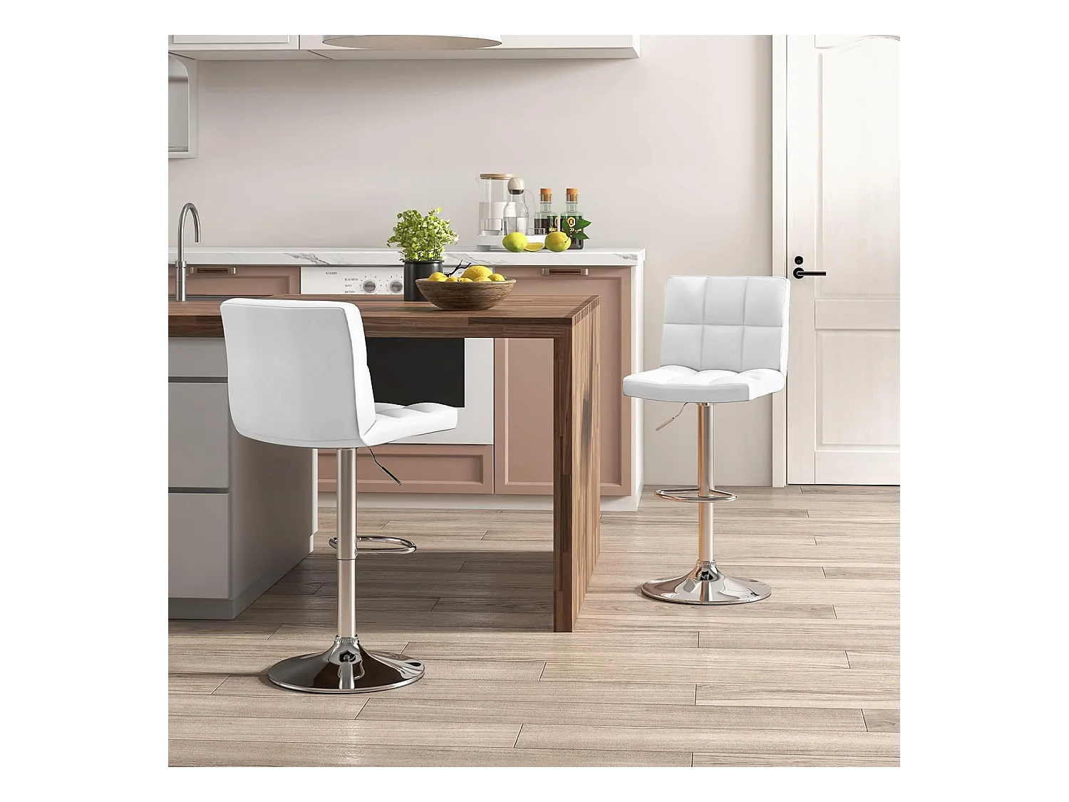 Lot de 2 Tabourets de Bar, Chaise Bar Pivotante, Hauteur Réglable, Chaises de Bar en Cuir PU, Repose-Pieds, Cadre en Métal Galvanisé (Blanc)