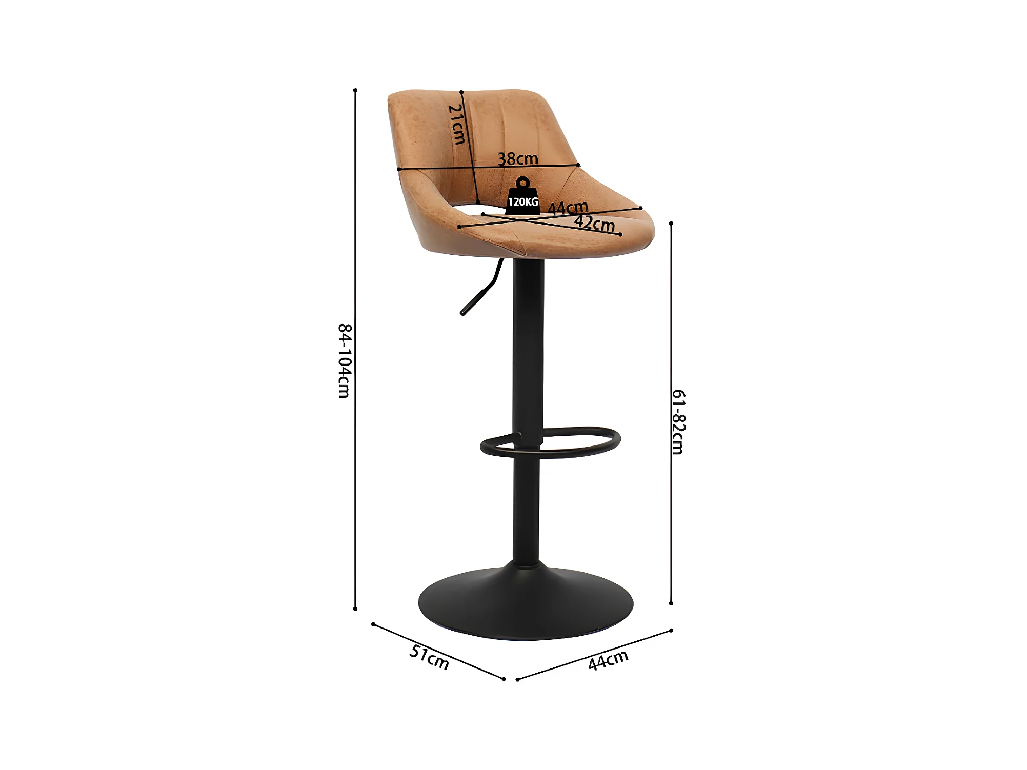 Tabouret de bar pivotant réglable Trevi PU cognac