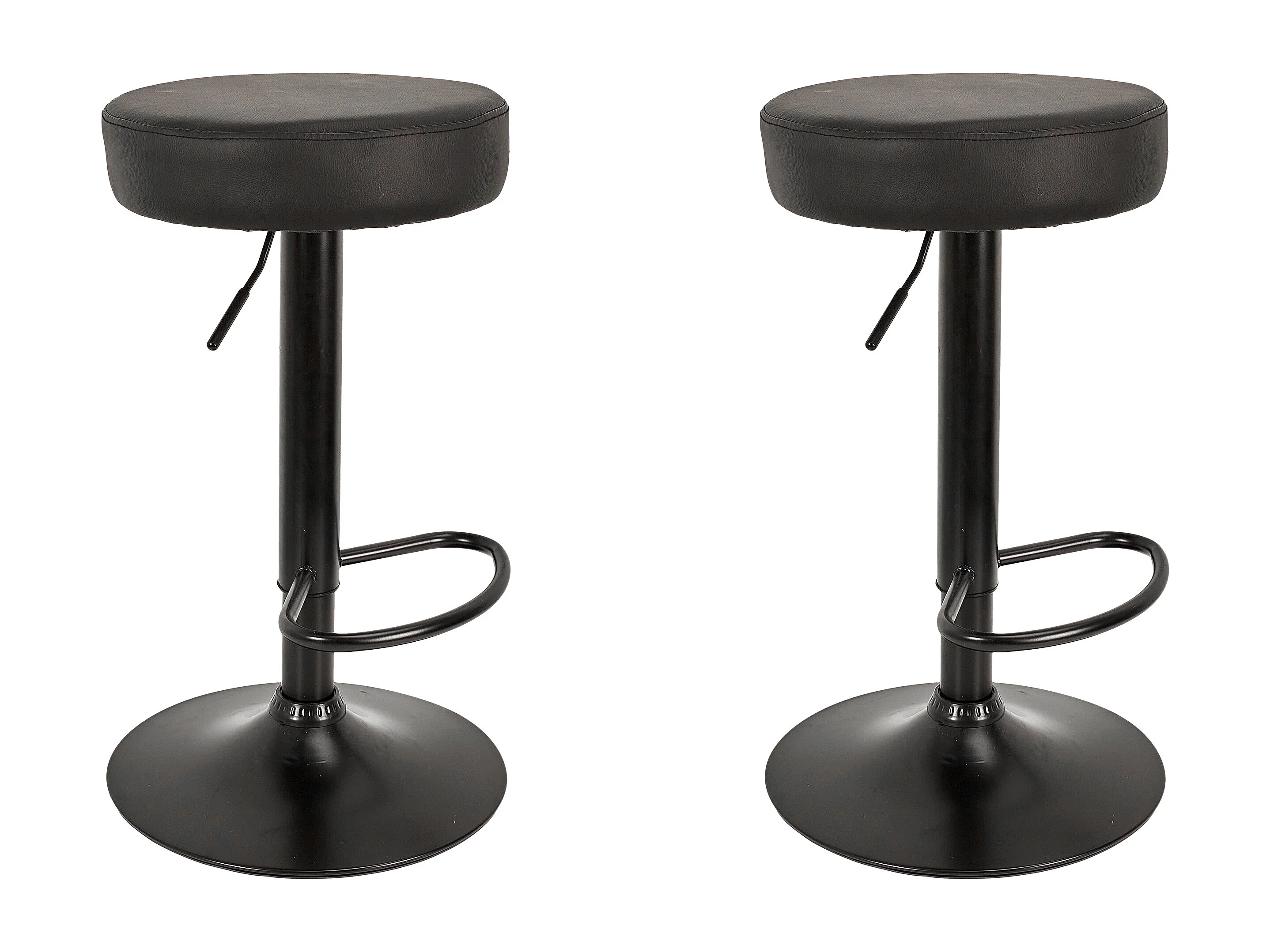 Lot 2 tabourets bar rond simili cuir rembourré pivotant hauteur réglable pied chrome YO (noir)