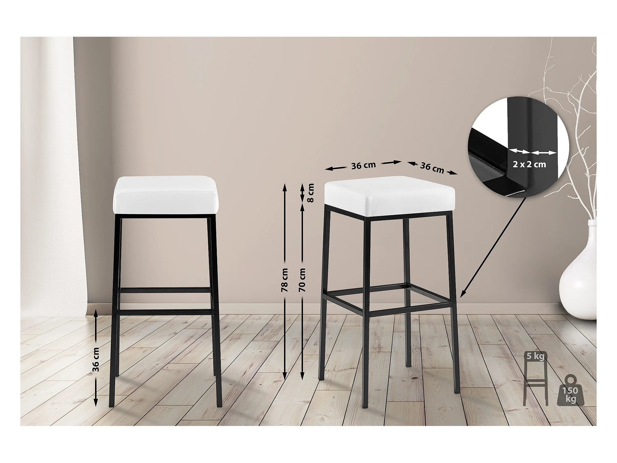 Tabouret de bar - Similicuir & Noir - Blanc - Montreal 80