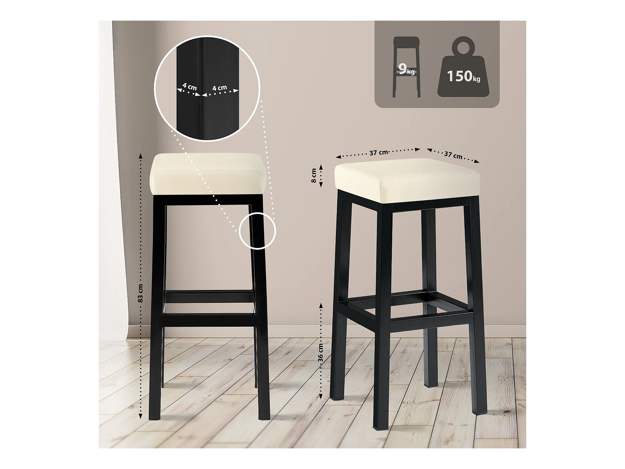 Lot de 2 Tabouret de bar - Similicuir & Noir - Crème - Montreal 80