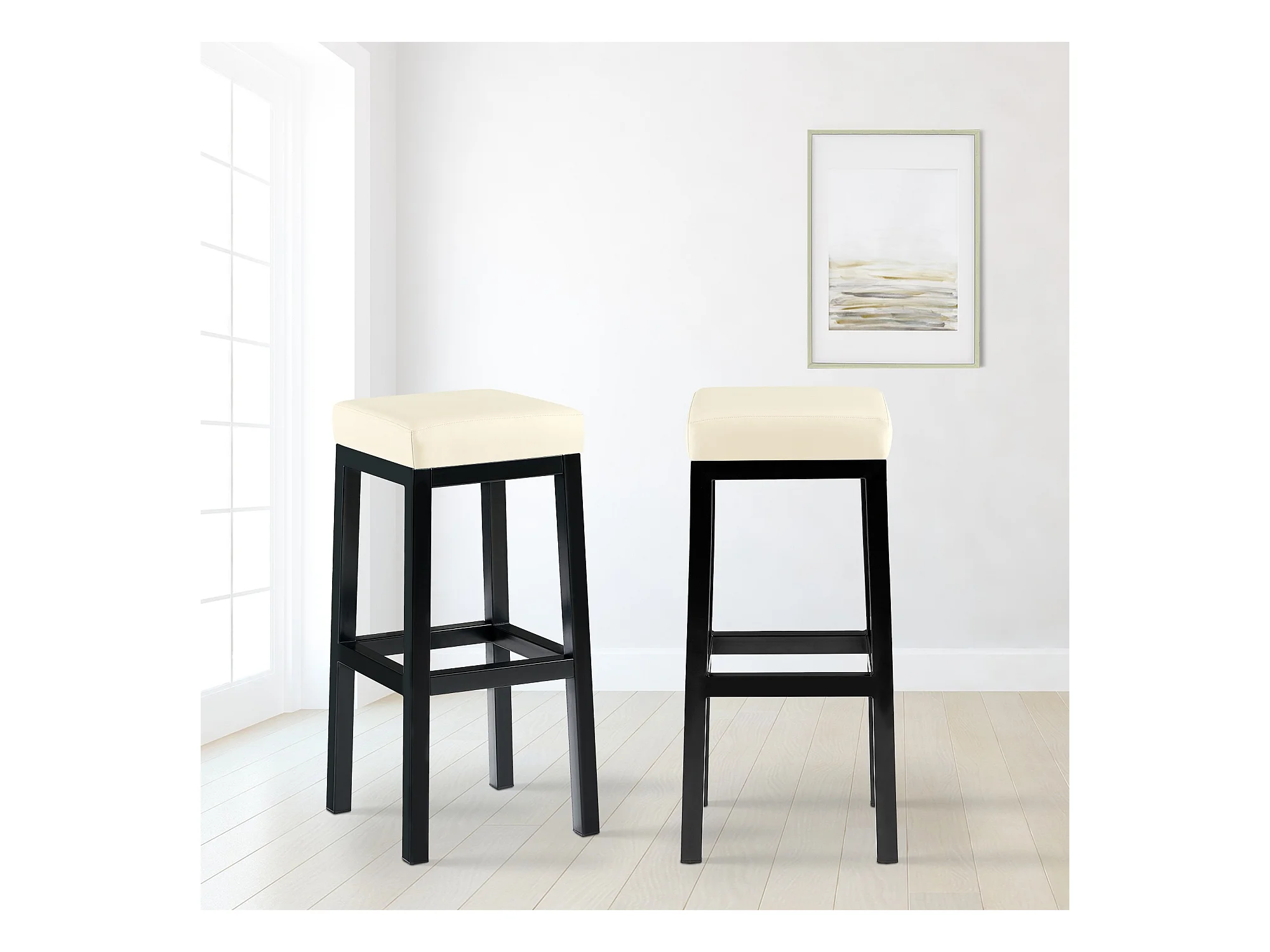 Lot de 2 Tabouret de bar - Similicuir & Noir - Crème - Montreal 85